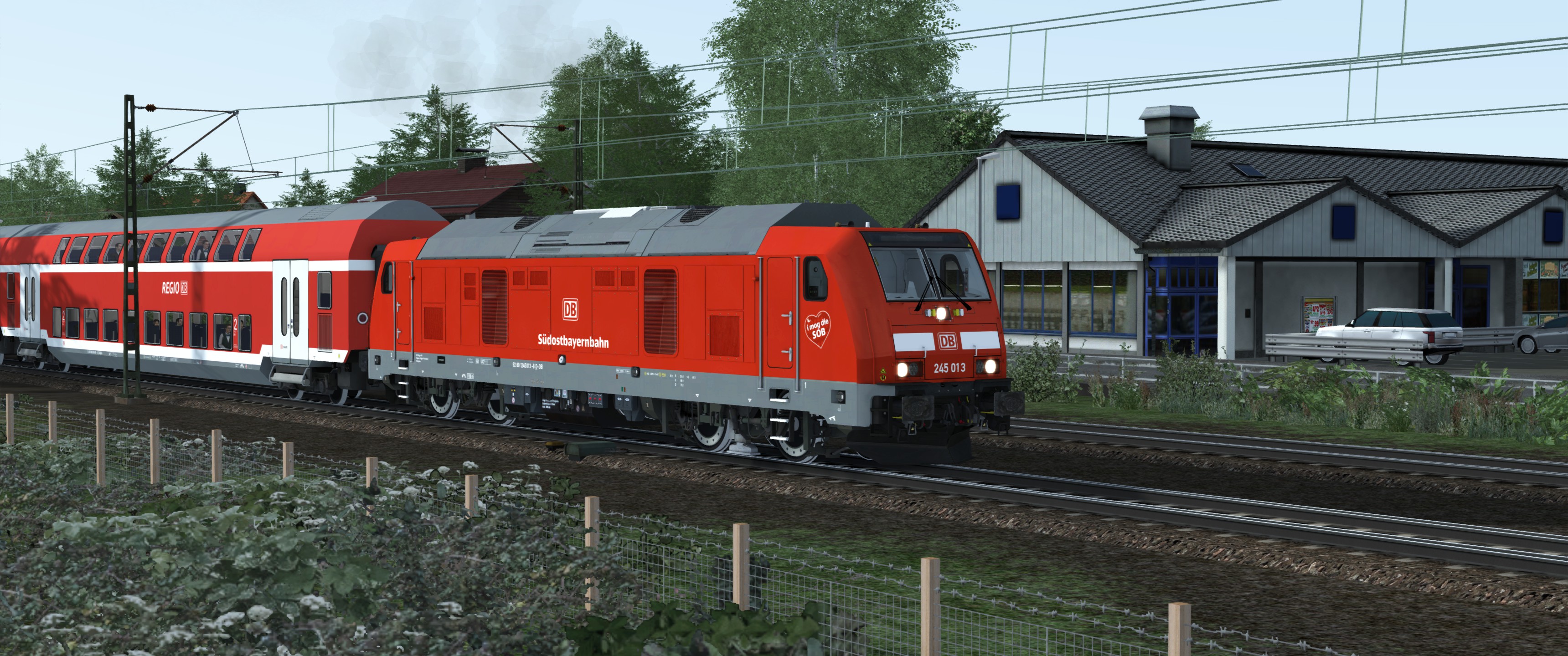 Ein erstes Ergebnis ist jetzt die RSSLO 245 Südostbayernbahn. Da die Textur im Bereich der seitlichen Abdeckungen gespiegelt ist, konnte ich den Schriftzug nur per Childobject unterbringen.