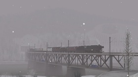 Mit Volldampf durch den Schnee. Trotz rutschiger Schienen lacht das Kraftpaket über die 20 Wägelchen.