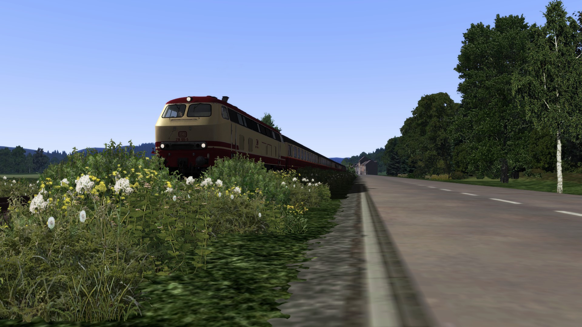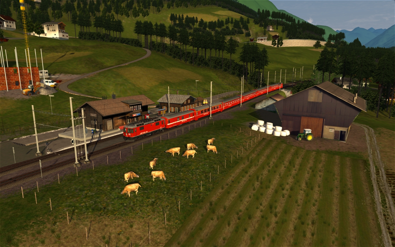 Wobei mir die Vegetation eigentlich sogar einigermaßen zusagt. Aber Gleise, Terrain und Himmel mussten angepasst werden. -