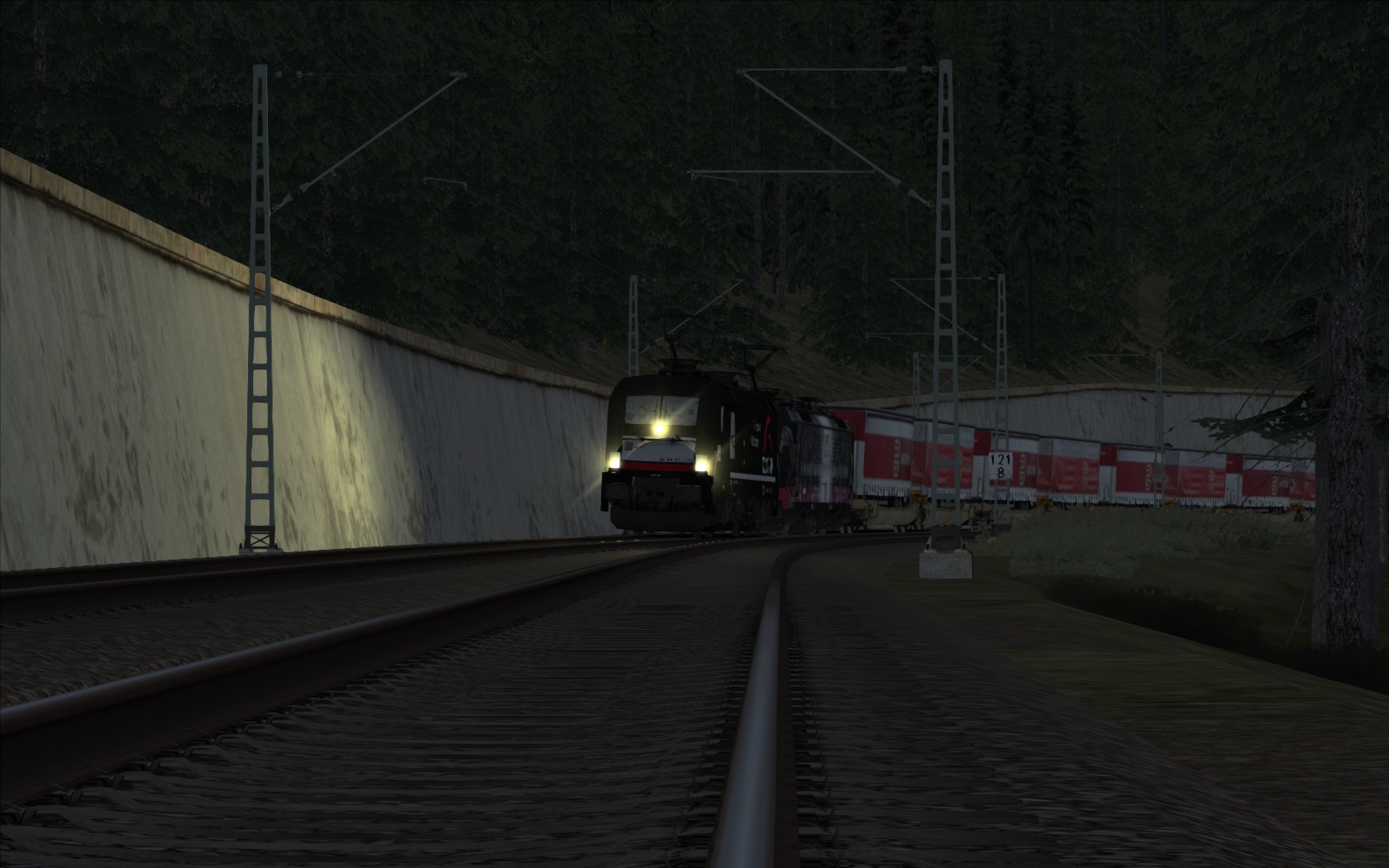 Unterwegs auf meiner Strecken-Neuerwerbung mit einem Arcese-KLV, gezogen von einer 182 und einer 189. Das Szenario "Im Abendrot nach Singen" von @curt2244 kann ich nur weiterempfehlen, allein schon wegen der Doppeltraktion mit 2 verschiedenen Baureihen. Das kann man sich als Fan der EuroSprinter nicht entgehen lassen. Vielen Dank für das schöne Szenario!