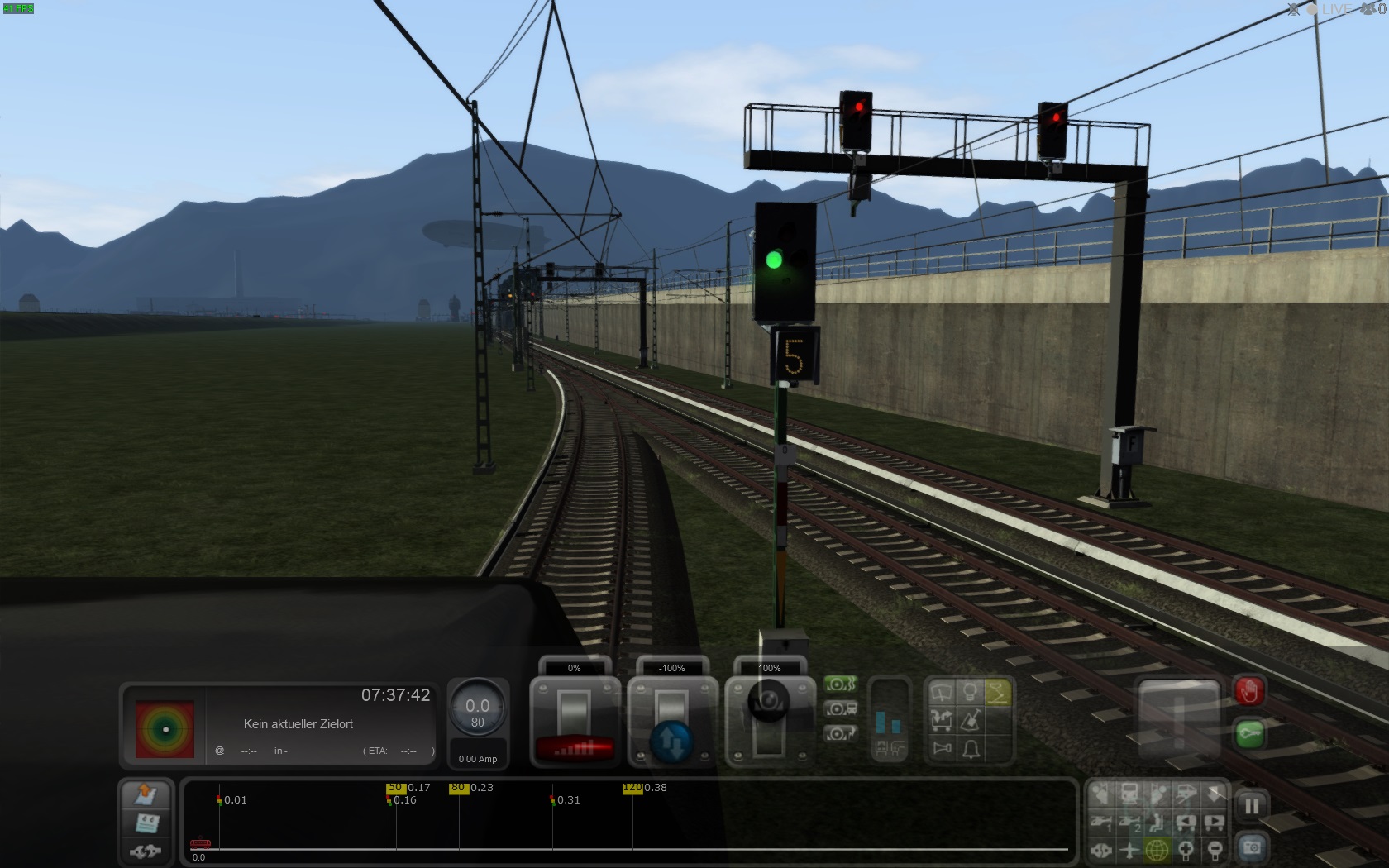 Im Fahr-/Bremstest hat sich aber ergeben das ich durchaus diese auch mit 60 Beschildern kann und trotzdem gleichmässig einfahren kann. Damit würden sich nun diverse Anzeigeproblemchens mit Formsignale lösen lassen und diese nun auch plausibel und halbwegs realitätsnah schalten.Fällt mir gerade so ein .... Ich habe eine Geradeausstrecke mit Oberleitung. Mittendrin ein Abzweig.