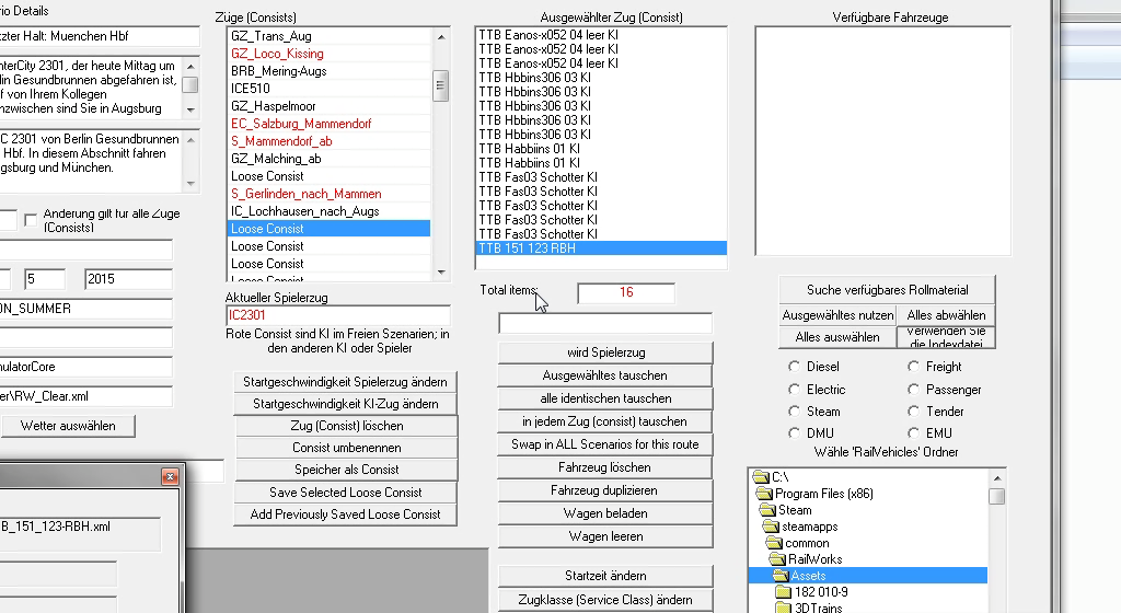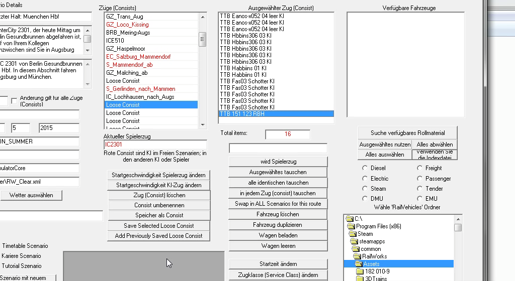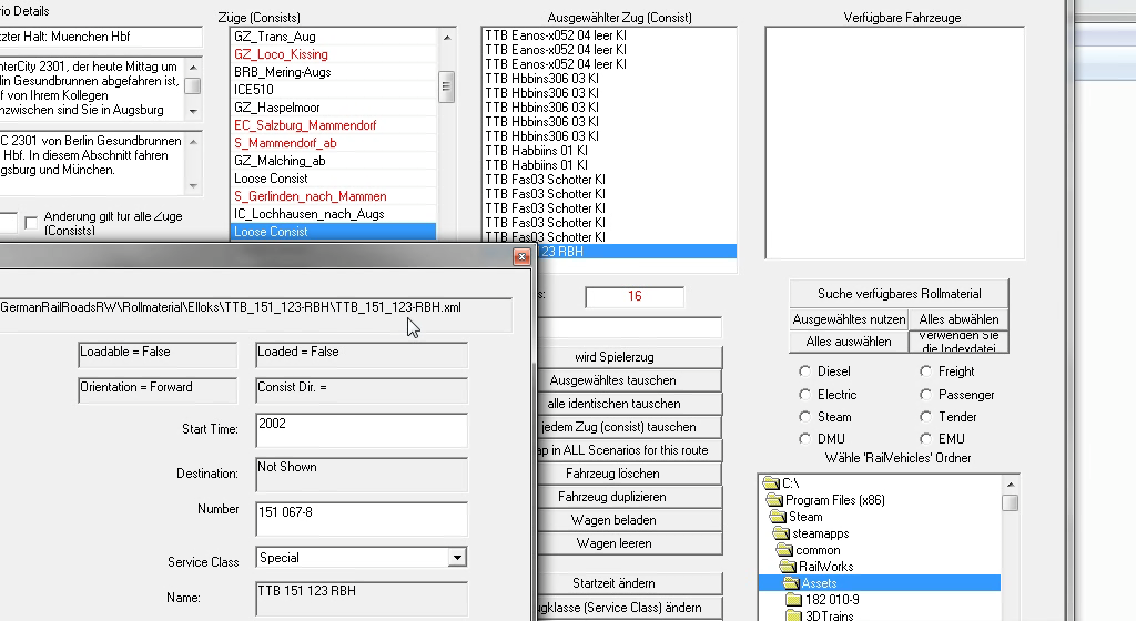 seit kurzem habe ich in einigen Aufgaben Probleme mit dem Rollmaterial aus den TTB Szenariopaketen. Bisher kam die Meldung das die TTB 151 123 RBH nicht geladen werden konnte (durch F2 drücken war das Szenario spielbar und es stand auch kein Zug im Weg). Nun habe ich eine Aufgabe für Husum - Westerland geladen, dort kommt die Meldung das die BR648 (Teil _A und _B) nicht geladen werden kann genauso wenig wie der Stw (InterConnex). Der Spielerzug der allerdings auch aus InterConnex Wagen inkl. Steuerwagen besteht ist geladen. Direkt nach der Abfahrt in Husum steht dann ein (wahrscheinlich der unvollständige) KI Zug und blockiert das Gleis (KI Zug besteht auch aus InterConnex Wagen mit Steuerwagen vorraus). Weiß jemand woran das liegen könnte. Habe bereits neu installiert und auf Halycon sind auch beide Szenariopakete regestriert.