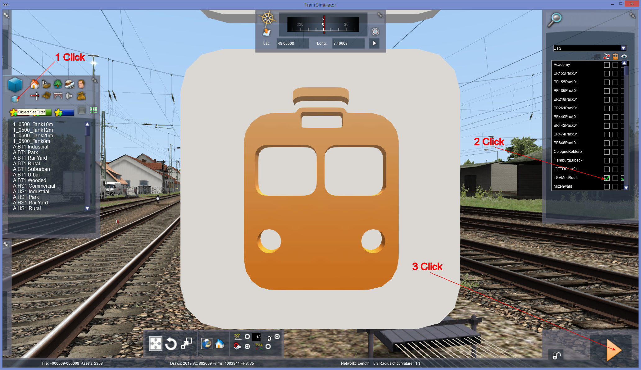 1/ The route uses a dedicated file in the route folder : You just have to find the good file ! IE for Konstanz Villingen : Assets\VirtualRailroads\Konstanz-Villingen\Procedural\Bahnsteig\Bahnsteig_Characters.bin. You just have to copy PlatformCharacters.bin from any folder of my patch DTG/RSC German route patch for 3D trees, platforms and sky in a temp location, rename it Bahnsteig_Characters.bin and copy from the temp place to Assets\VirtualRailroads\Konstanz-Villingen\Procedural\Bahnsteig\Bahnsteig_Characters.bin. When it's done, go in the main menu, bluid and edit the Konstanz Villingen route. Click like on the picture :