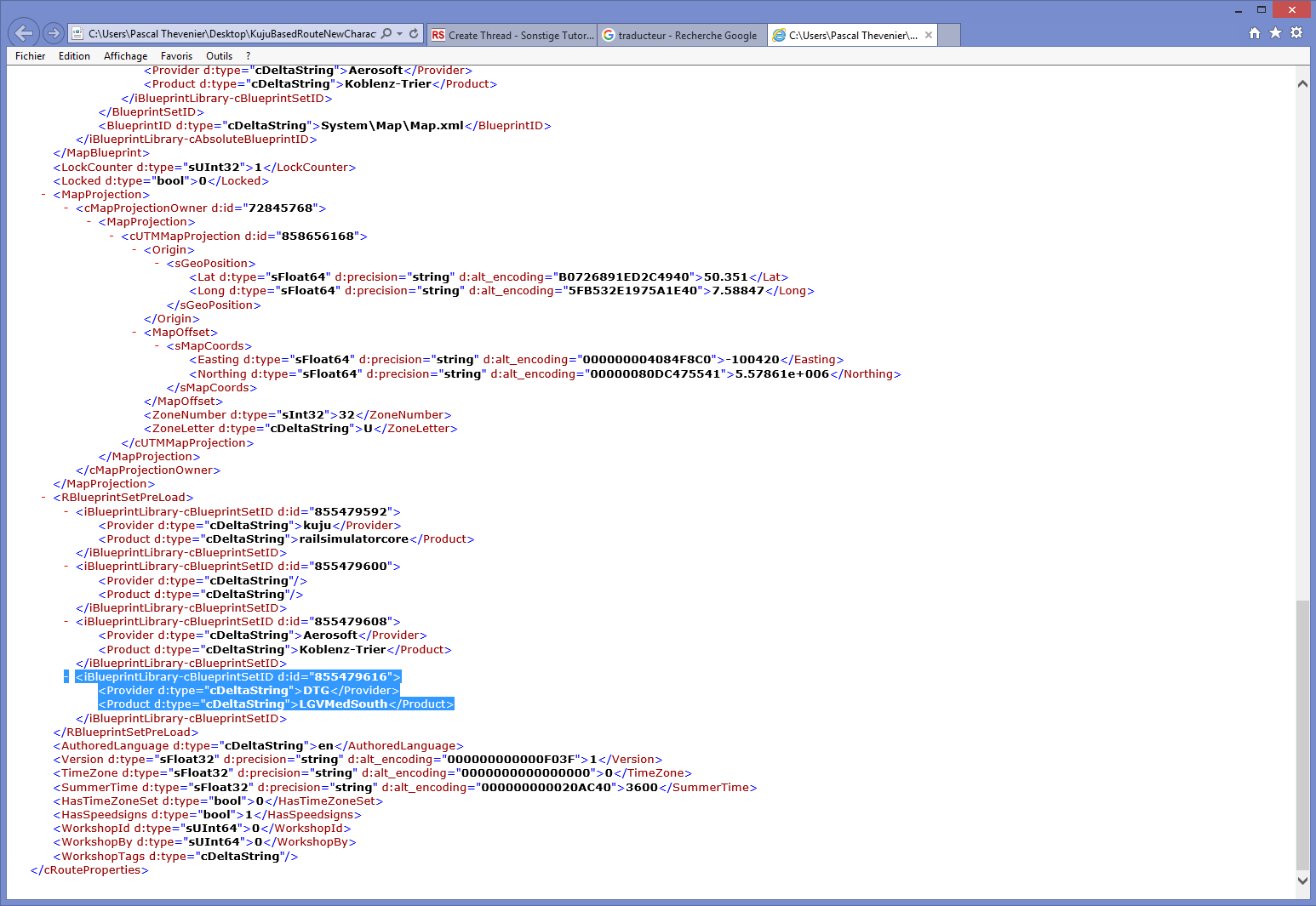 PlatformCharacters 00s.bin. Create a second copy of PlatformCharacters.bin and rename it PlatformCharacters 00s DE.bin. Copy the two files from the temp location to Assets\Kuju\RailSimulator\scenery\Procedural. Now, it will not be funny. The change will affect ANY ROUTE using the Kuju based files ! It's not possible to know which route use it but it could be a lot of routes ! You will have to edit ANY route to add DTG LGVMedSouth like explained in case 1. Berlin - Leipzig, Koblenz Trier and 3CCR are using the Kuju based files. But also : Seebergbhan, Hagen - Siegen, etc.