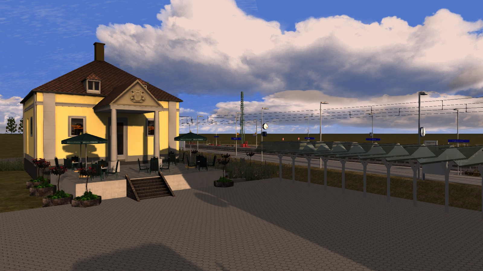 Nimm für die Bahnhofsschilder am besten eine andere Schriftart, sofern du keine Fototexturen besorgen kannst.