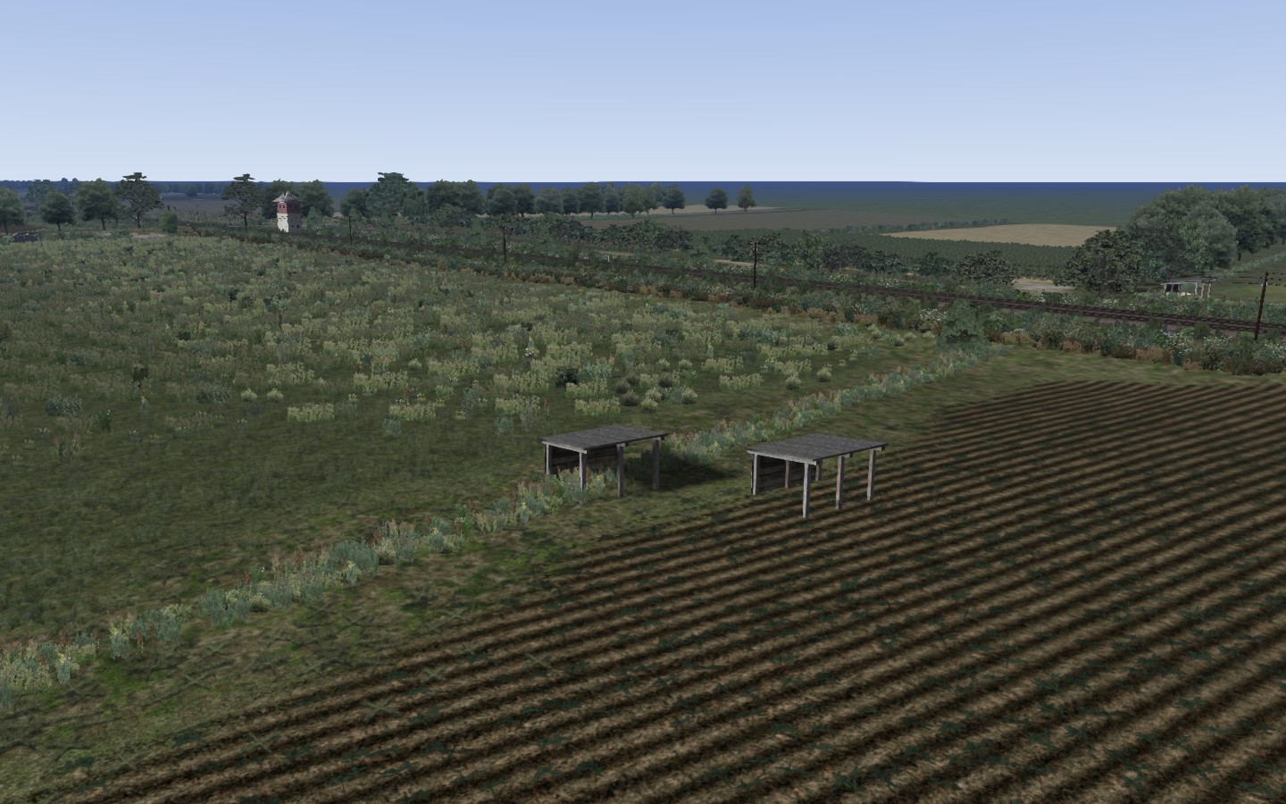 Die kleinen Schuppen sind in der Warteschleife, dann kommt die Version 1.1 vom Unterstand und wenn ich verstanden habe, wie eine Nachttextur geht, der kleine Schranken-Posten.