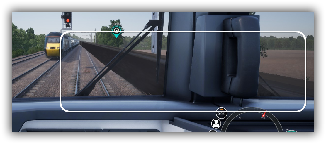 Und bei entgegenkommenden Zügen habe ich ein Grafikproblem. Kurz bevor der Zug passiert, entsteht ein schwarzer Balken, der sich komplett über den Bildschirm zieht, nicht nur beim HST, auch bei der Class 166. Tritt erst bei höheren Geschwindigkeiten auf (und war vielleicht deshalb auch bei TSW/CSX noch nicht sichtbar).