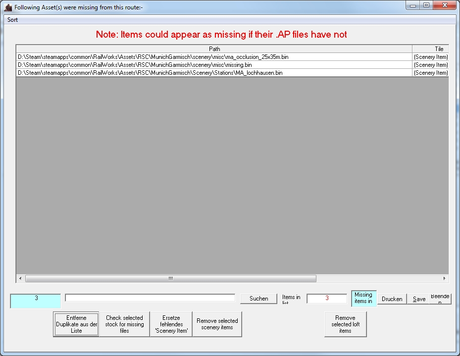 Folglich sehe ich beide fehlende Objekte als heiße Luft von RWTools an, da in Starnberg das Objekt da ist wo es sein soll und in Lochhausen fehlt halt der Bahnhof. Warum der aber bei Berliner als fehlend angezeigt wird - nunja, ich kann und will mir nicht über alles den Kopf zerbrechen. Vermutlich gab es mittlerweile viele Updates von M-G, die ich aber bewusst übersprungen habe. Bei mir besitzen die .ap Archive jeweils den 28.11.2014 als Datum. Kann sein, dass damit etwas nicht mehr im Reinen liegt. Oder durch die tolle Streckenzusammenlegung mit M-A aus dem Workshop könnte ebenfalls diese Kachel entstanden sein und ist im M-G Ordner verblieben. Wie gesagt: Ignorieren.
