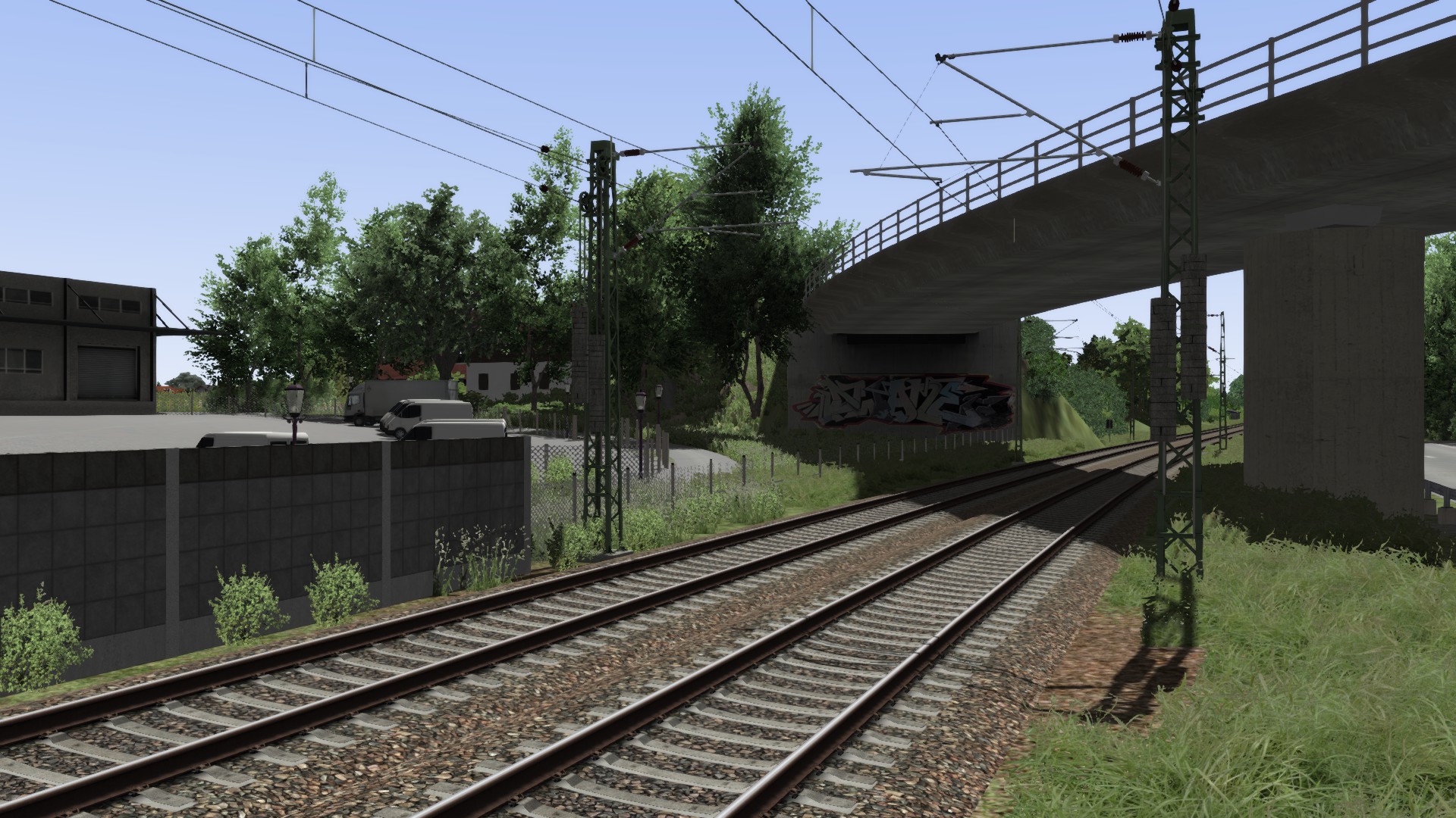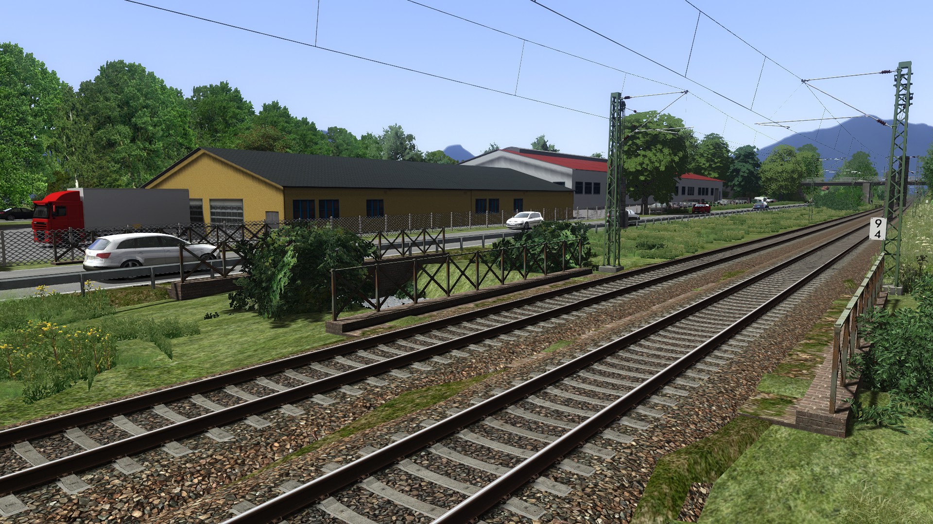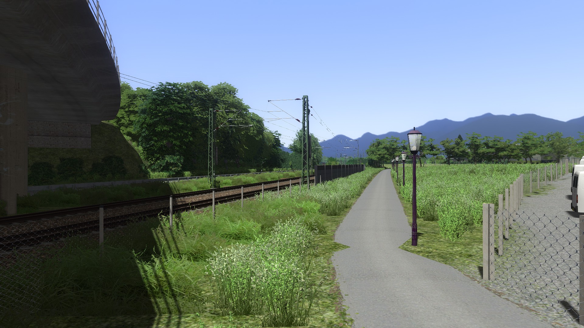 Auf den Abschnitt, den die bisherigen Bilder gezeigt haben hat sich zwar wenig, dafür hat sich aber was am Ende der Strecke in Kufstein getan. Dort wurden die Scenery kacheln von der Brennerstrecke von RSSLO mit ein wenig aufwand importiert und schon Teilweise angepasst. Die Bereiche in Gleisnähe werden aber neugebaut, da mir RSSLO hier zu weit von den realen Gegebenheiten abstreift.