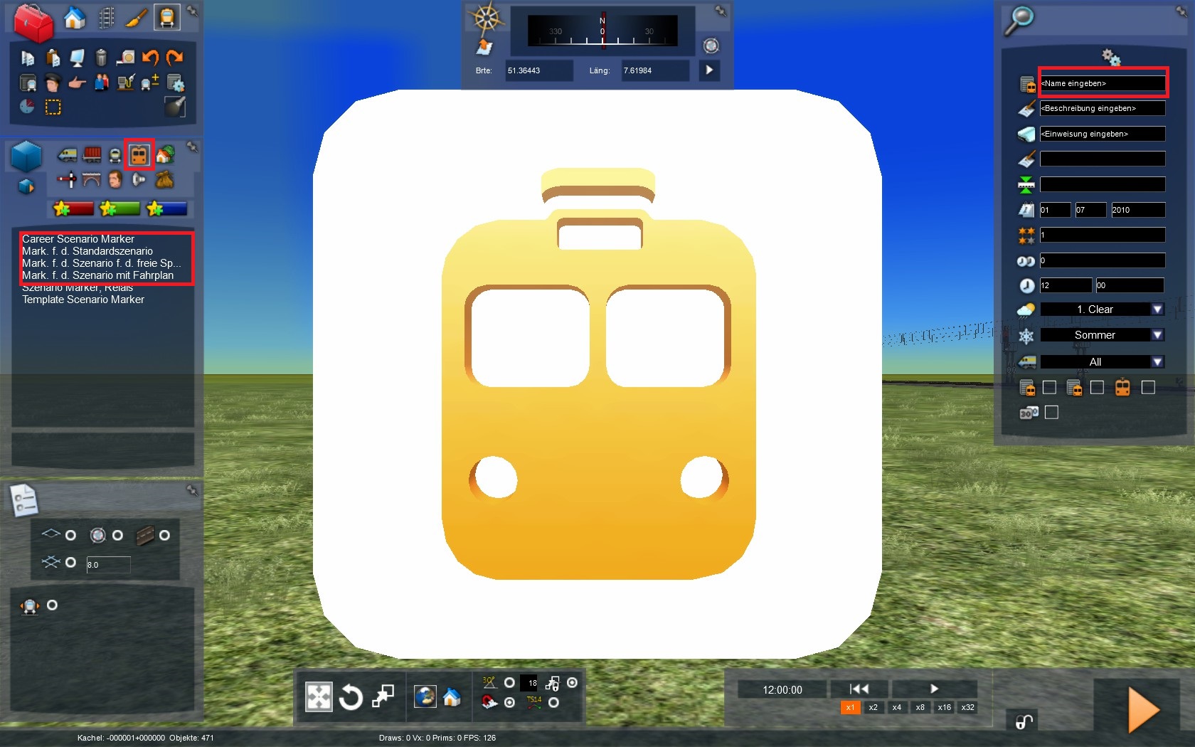 Hi ! Ich plane für Stralsund Neubrandenburg ein Szenario zu bauen,doch leider gibt es keine Startpunkte beim Erstellen des Szenarios.Darauf hat mir der Entwickler (danke nochmal) geantwortet : Die Implementierung dieser Daten ist noch nicht geschehen - du musst ein vorhandenes Szenario laden und dort dann separat einen Marker für ein neues Szenario setzen, am besten am gewählten Startpunkt.