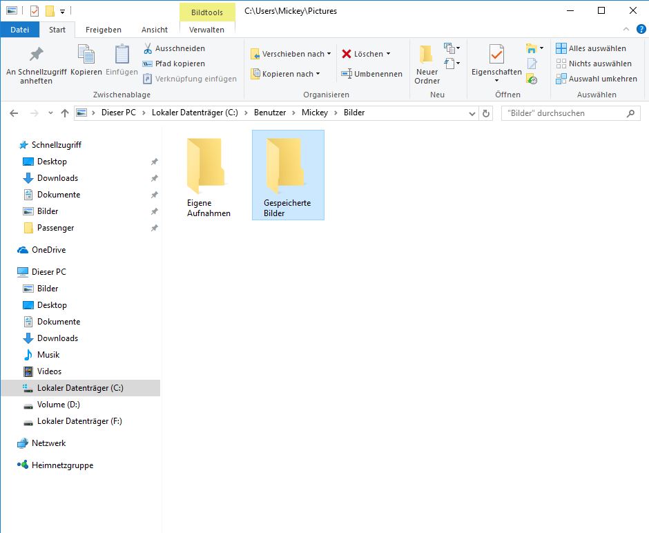 Ich habe unter Windows/User/Bilder nachgeschaut, aber da ist kein Bild!