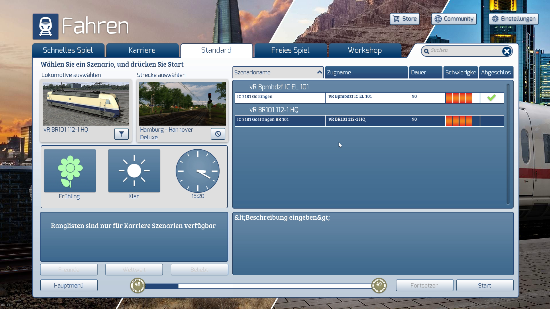 So nun aktuelle Strecke installiert, TSC-Magneten 2.0 hinterher und die Strecke (Aufgabe "IC nach Göttingen) lief diesmal ohne die Fehlermeldung. Lediglich andere Aufgaben und der QD verweigerten den Dienst.