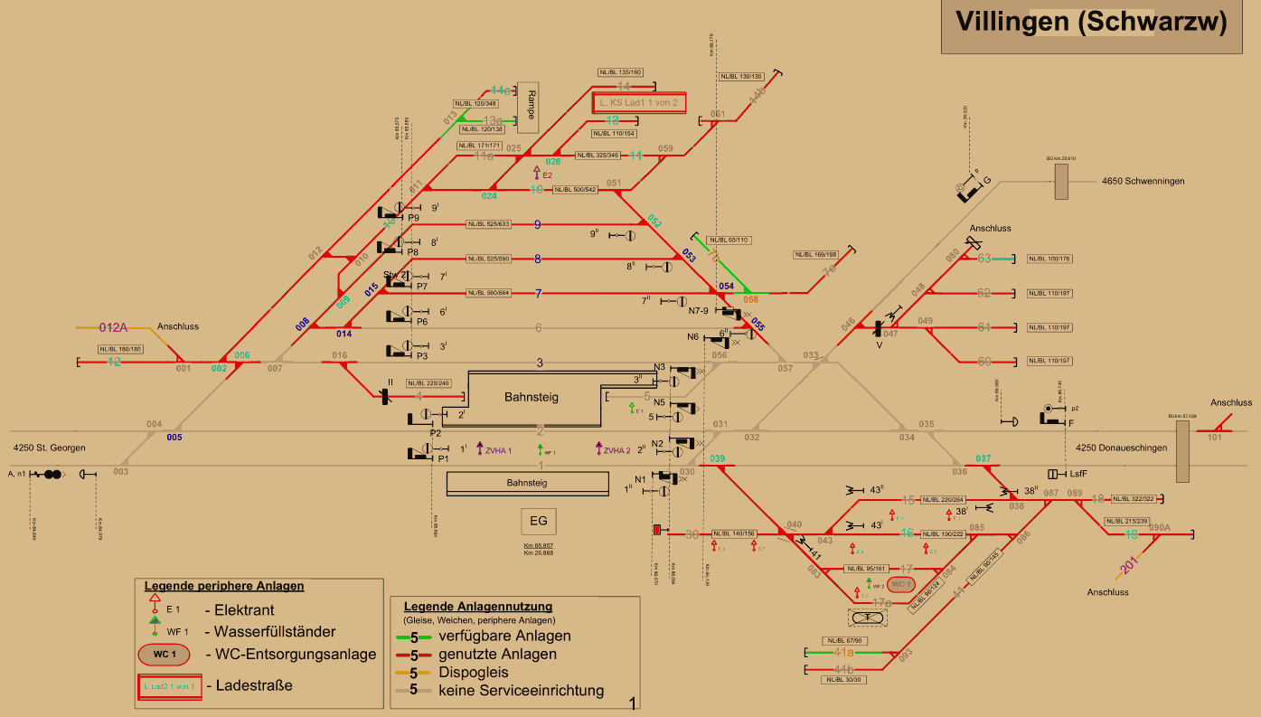 Wenn es was gibt, sind sogar die Gleislängen eingetragen.