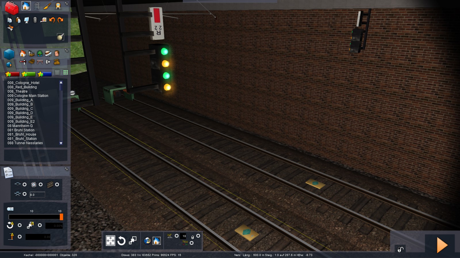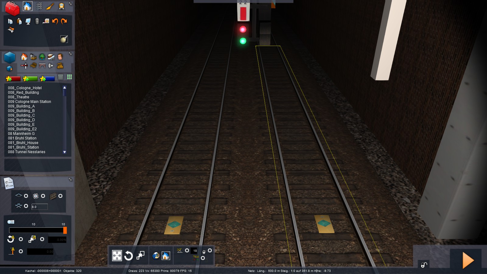 Die linke Strecke ist die Tramstrecke und die rechte ist dann die RER Strecke. Da der Dsipatcher bei mir Portale nicht mögen kann, musste ich 3 Blockabschnitte machen mit je einem Portal mit hoffnung es klappt dann. Hat jemand auch ähnliche Probleme? Theoretisch sollte es dann mit Vortrittregel und Blockabstände funktionieren, oder? Naja wie dem auch sei...