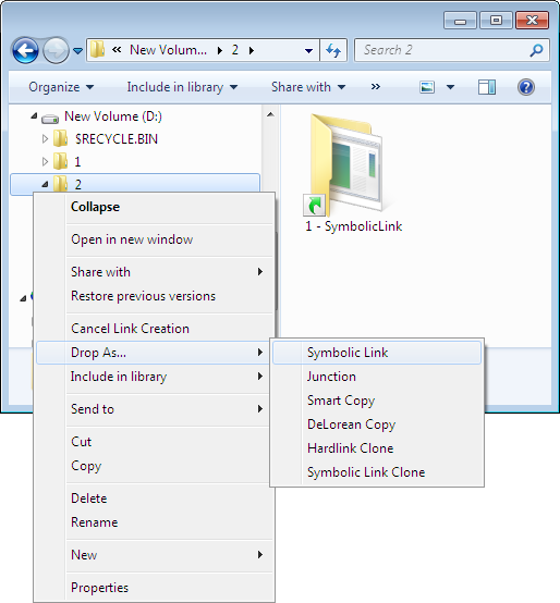 Hilfreiches Freeware-Tool welches MS Junctions in den Kontext-Menu der rechten Maustaste installiert. Freeware von Hermann Schinagl :http://schinagl.priv.at/nt/har…t/linkshellextension.html