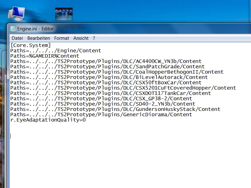 Einfach folgende Zeile in der Engine.ini hinzufügen: (...\Documents\My Games\TS2Prototype\Saved\Config\WindowsNoEditor\Engine.ini)
