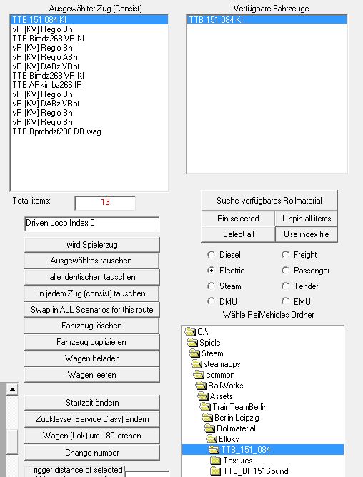 Ich habe bei einem Szenario mittels RWTools etwas Rollmaterial ausgetauscht, da ich leider nicht alles verfügbar habe.