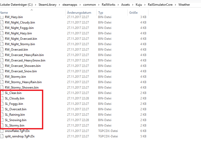 Nach der neu istallation des TS20xx auf meinen neuen Rechner wollte ich das Wetter im kuju Ordner austauchen und zwar mit (Mach_SevereStorm1.bin) gegen das Standard Wetter (SL_Stormy.bin) aber es geht nicht. In der alten Ts20xx installation auf dem alten Rechner ging es. Habt ihr eine idee woran das liegt.