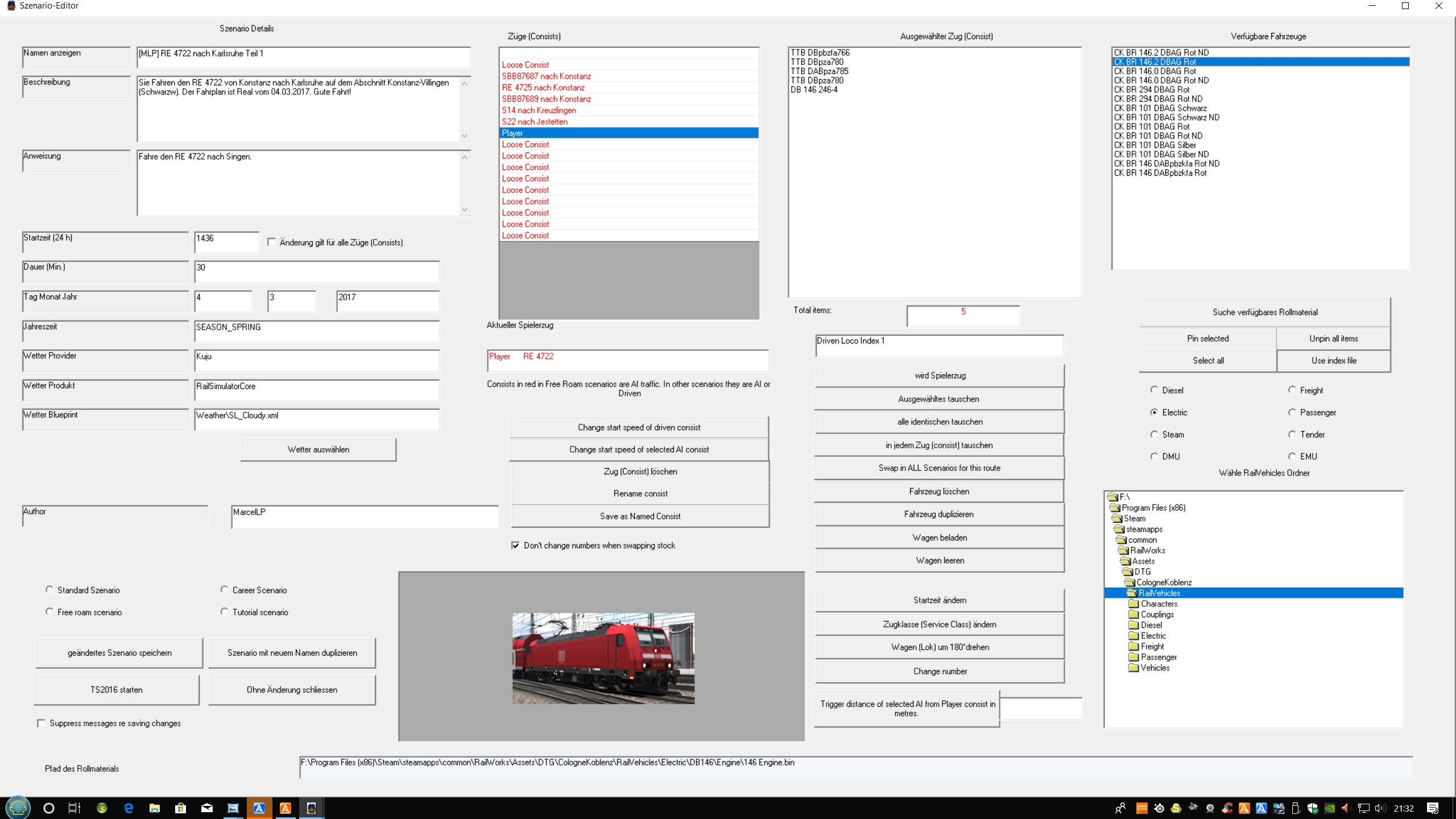 Wollte soeben versuchen ein Szenario mit RW_Tools bearbeiten(Eines von den Strecken die RW_Tools erkannt hat) und wollte bei einem Szenario mit der Metronom 146, diese in eine DTG 146 von Köln Koblenz ändern.