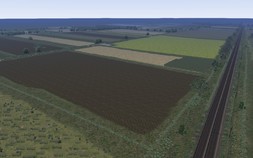 Mal etwas zum Thema, wie weit man in die Tiefe bauen muss. Auf dem Bild der Wald im Hintergrund, bzw. links ist 1300m von der Strecke weg. Baue ich nichts, gibt es ein unschlüssiges Loch, setzte ich einen durchgehenden Baumstreifen, geht das typische der Landschaft verloren. Hier in der Oberpfalz gibt es längere Passagen im Wald, da muss man nicht viel machen. Bei meinem Sulingen Projekt habe ich überwiegend einen 1500m breiten Streifen auf jeder Seite. Nur so bekomme ich die typische Weite der niedersächsischen Landschaft. Wobei, wenn man nur zwei bis drei Baumsorten für die Distanz nimmt, geht das auch von den Ressourcen.