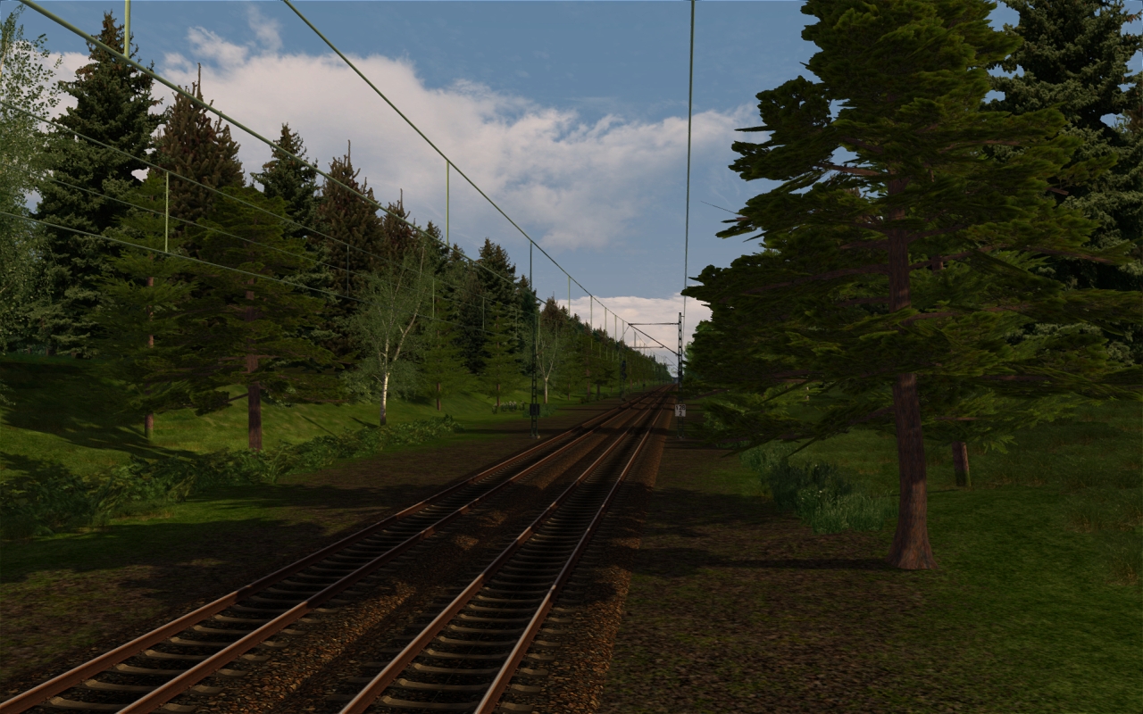Von einigen wurden sich für Hamburg-Hannover Deluxe dunkle Schottertexturen gewünscht, weshalb diese im Update wieder nachgereicht werden. DBTracks Variante wie zuletzt aus Trainworks Upgrades bekannt und hier die vR Tracks Variante. Für ältere Szenarien wohl doch eine bessere Optik. Außerdem ist ein neuer großer Baum zu sehen, der die unschöne kleine Tanne ersetzt. Warum größerer Baum? Weil damit gleichzeitig die original belassenen Stellen der Strecke fülliger aussehen.