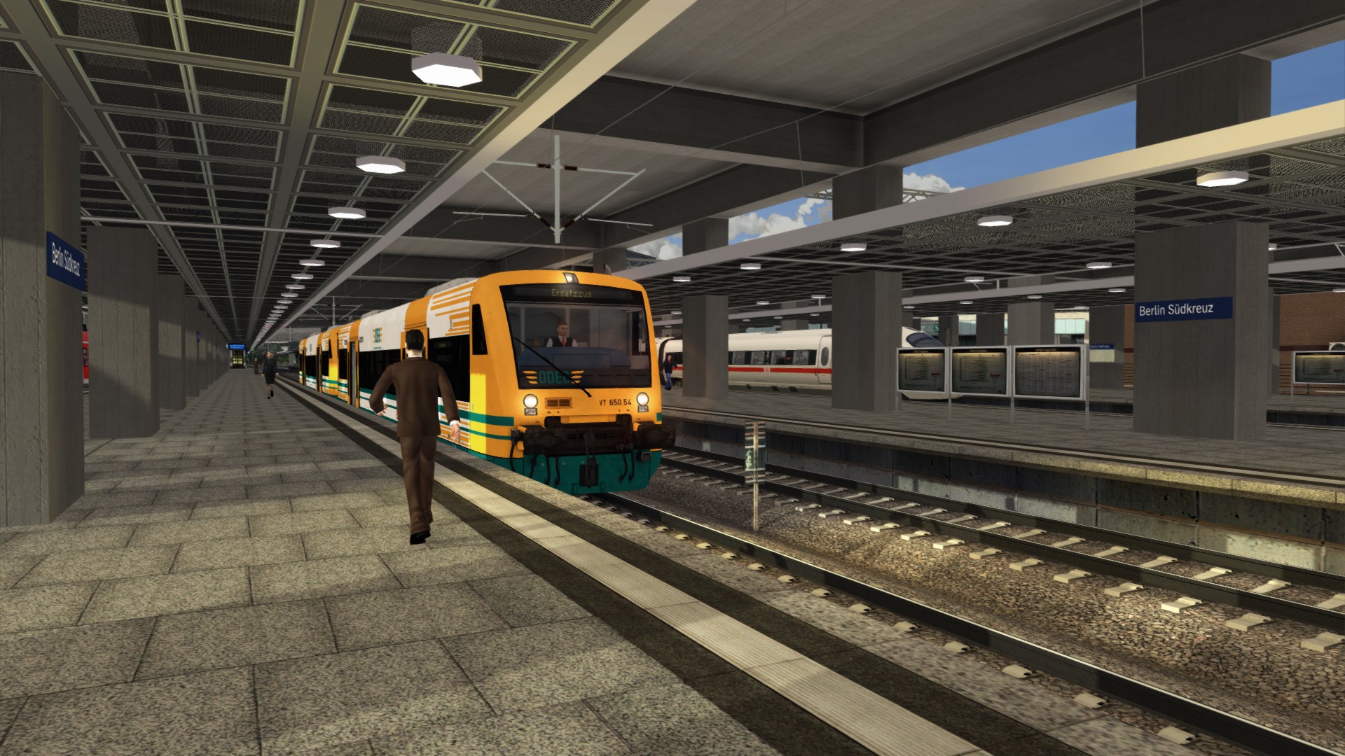 Heute bin ich in einem schönen Szenario von @brobonne zwei Stadler Regio-Shuttle RS1 der ODEG als RE4 Ersatzzug von Ludwigsfelde nach Berlin Hbf gefahren.