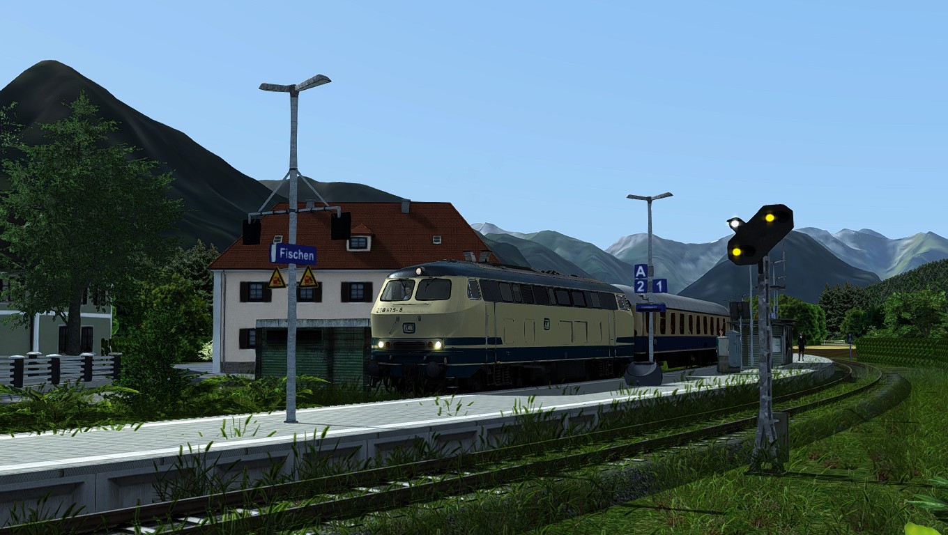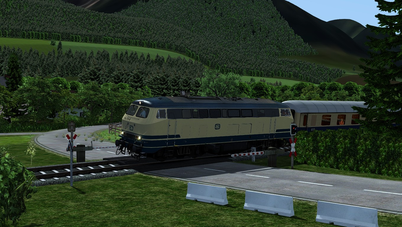 218 mit Eilzug zwischen Hamburg und Lübeck - ist zwar keine Hollywood-Grafik, aber wie im Flugsimulator auch geht es mir eher um die Bedienung der Fahrzeuge als um Optik.