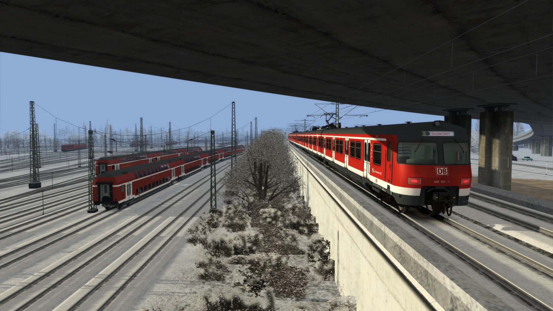Gestern bin ich in einem schönen Szenario von @Knuub mit der BR420 in Doppeltraktion einen S-Bahn-Sonderzug bei leichtem Schneefall von Düsseldorf nach Köln gefahren.