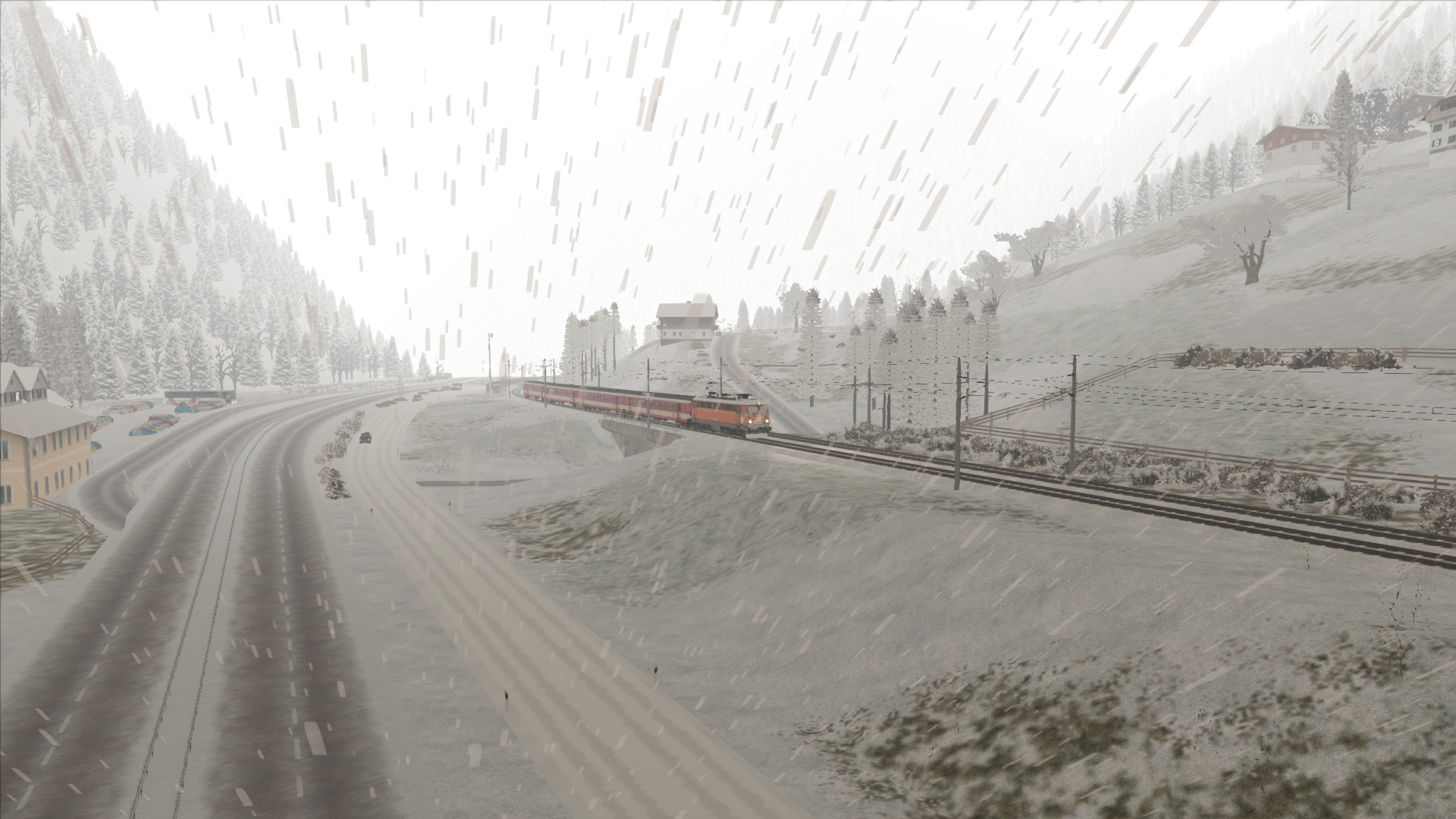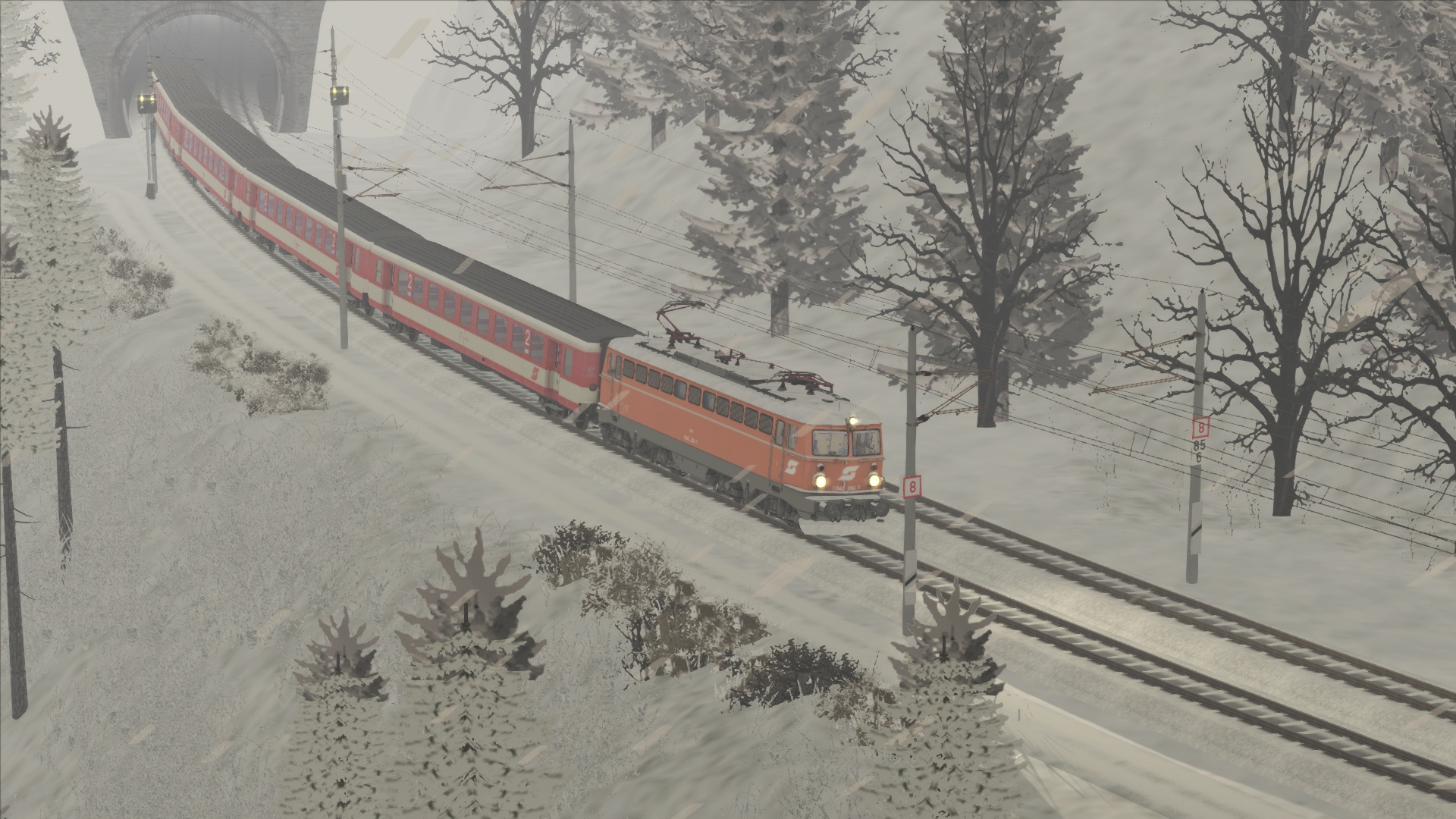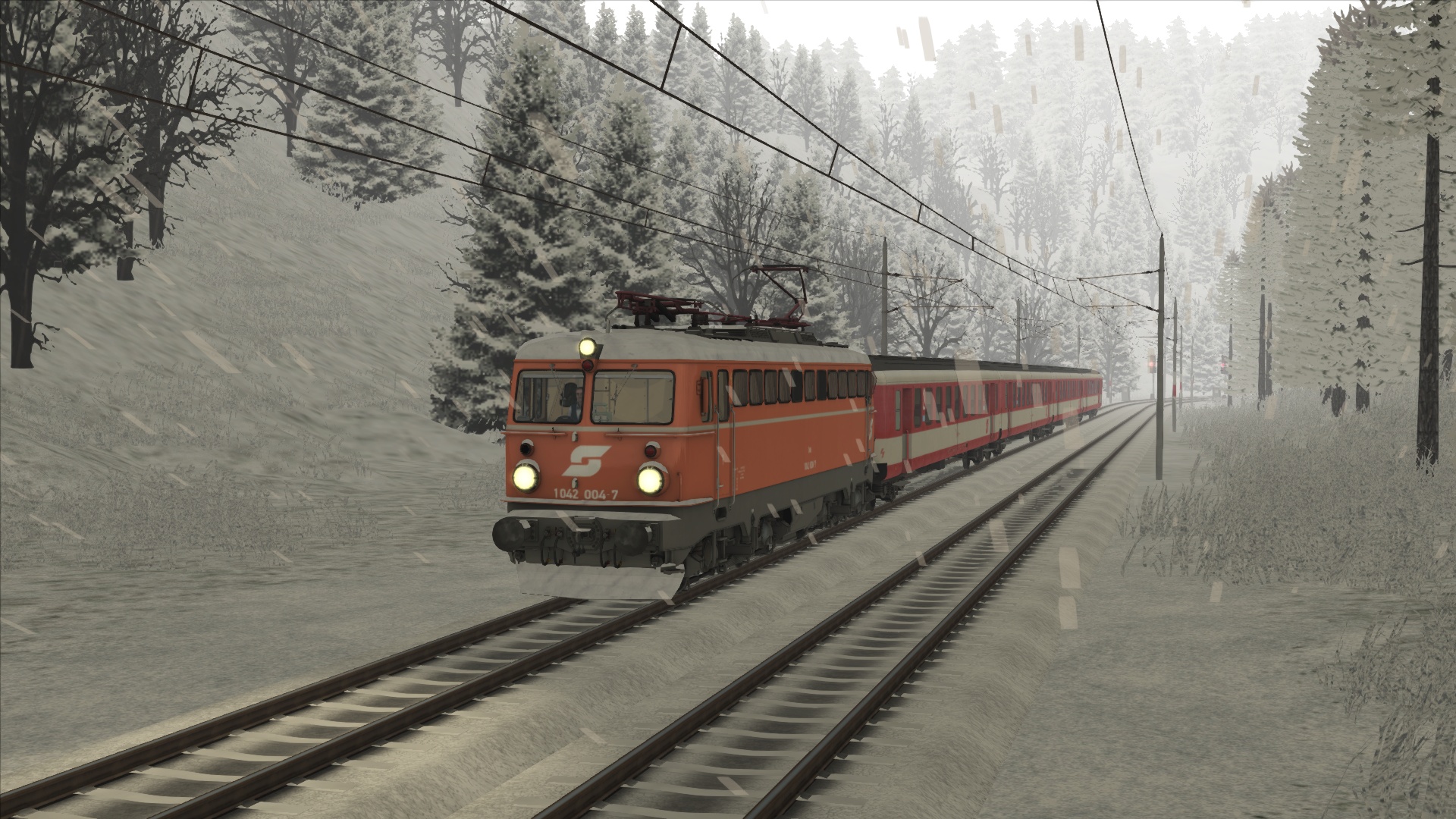 Mit der ÖBB Rh 1042 dem Brenner hinauf. Szenario OBB 1042 Brenner Zug, Personenwagen sind getauscht.