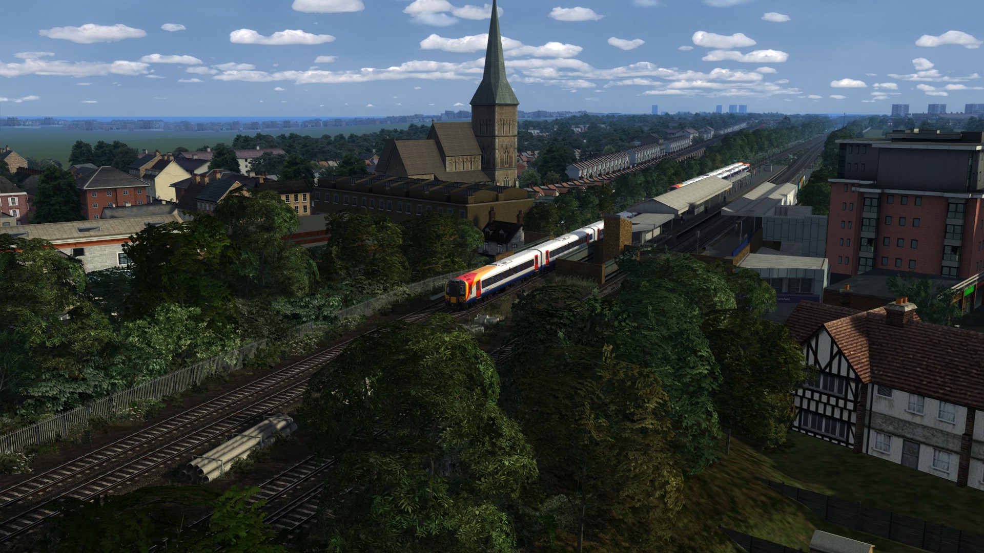 "1P15 07-30am London Waterloo to Portsmouth Harbour" auf Portsmouth Direct Line - Portsmouth Harbour London Waterloo. Ein 102 Minuten Szenario mit ordentlich KI Verkehr und einer Baustelle unterwegs, sehr schön gemacht.....