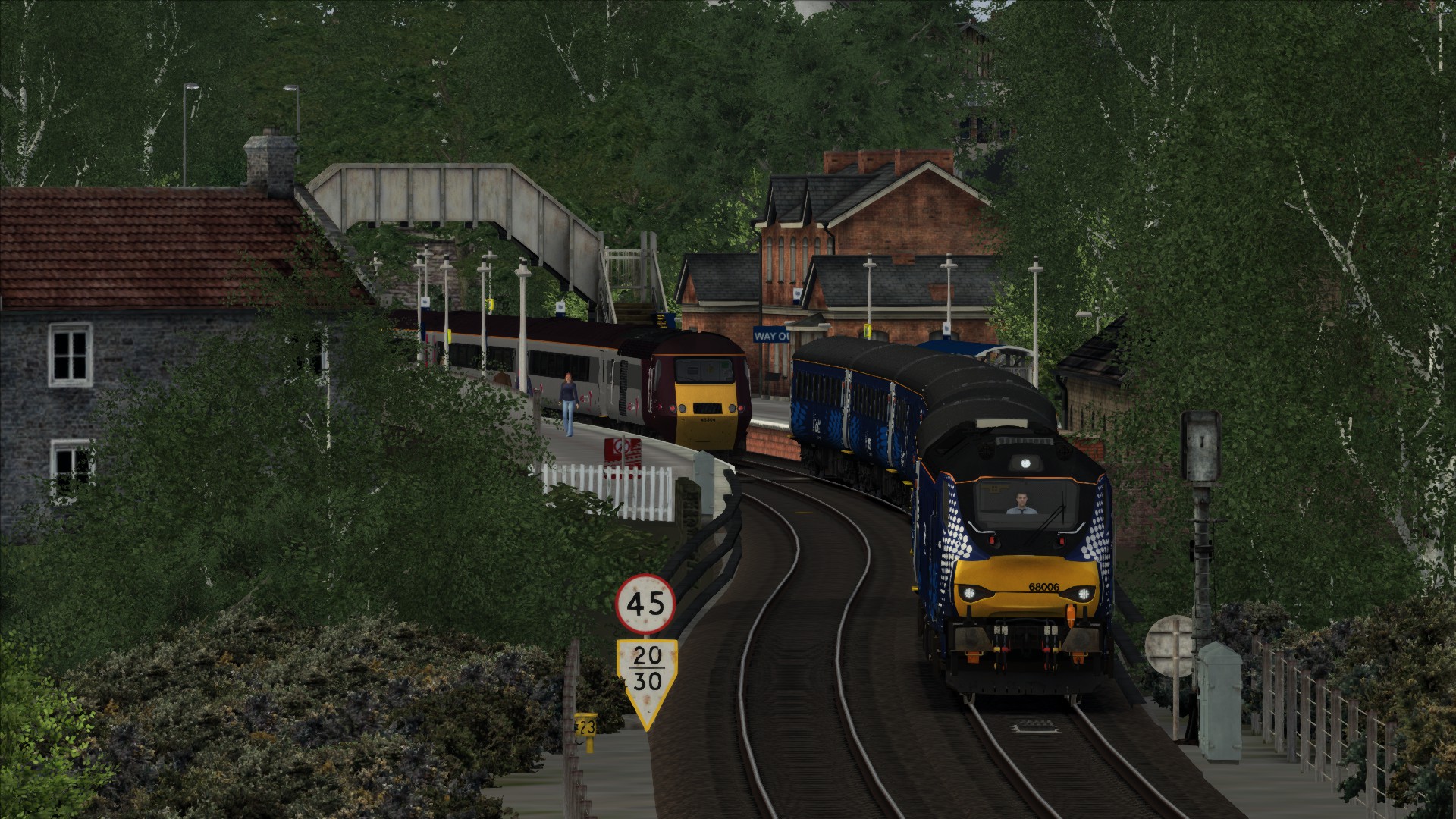 Unterwegs auf der Scotish ECML. Zug 2K01, Edinburgh Waverley - Glenrothes with Thornton, mit der Class 68 nach Originalfahrplan. Bei dieser Strecke wünscht man sich das sie von DTG nochmal erscheint. Landschaftlich ganz okay aber der Gleisbau von JT ist eine Katastrophe.