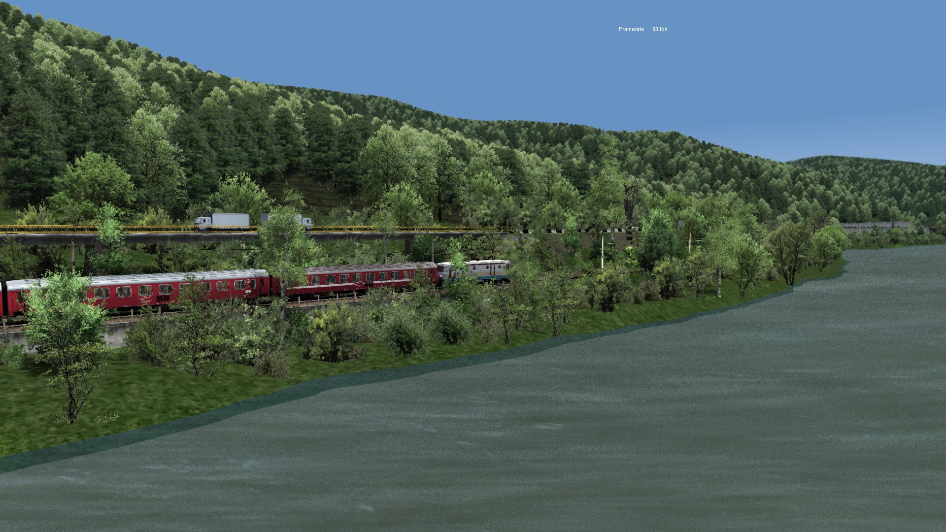 Der RW Enhancer wurde verwendet und zudem ein bisschen Rollmaterial getauscht und die Jahreszeit in den Sommer verlegt (ich stehe nicht so auf Fahrten, auf denen man nichts sieht