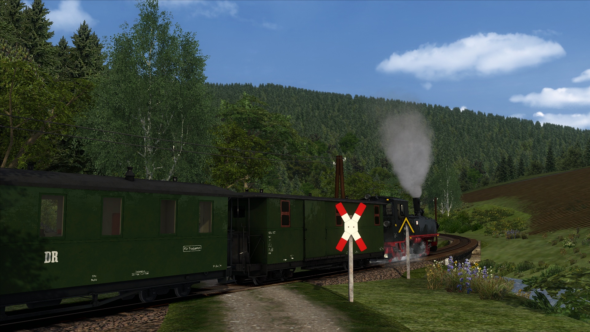 Der RW Enhancer wurde verwendet und zudem ein bisschen Rollmaterial getauscht und die Jahreszeit in den Sommer verlegt (ich stehe nicht so auf Fahrten, auf denen man nichts sieht