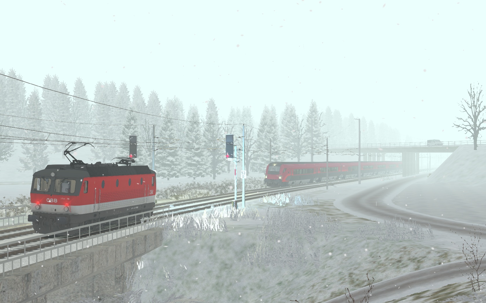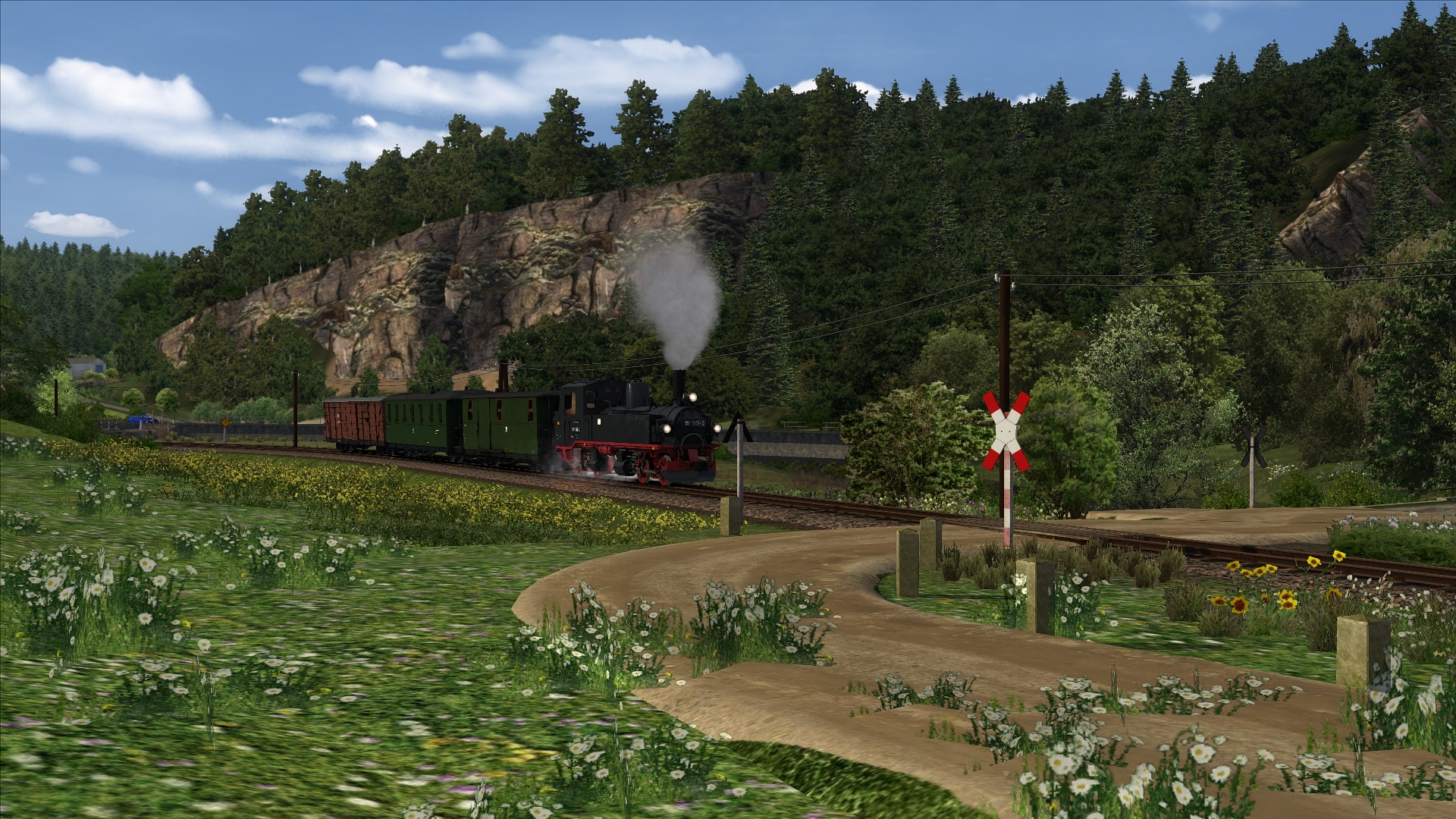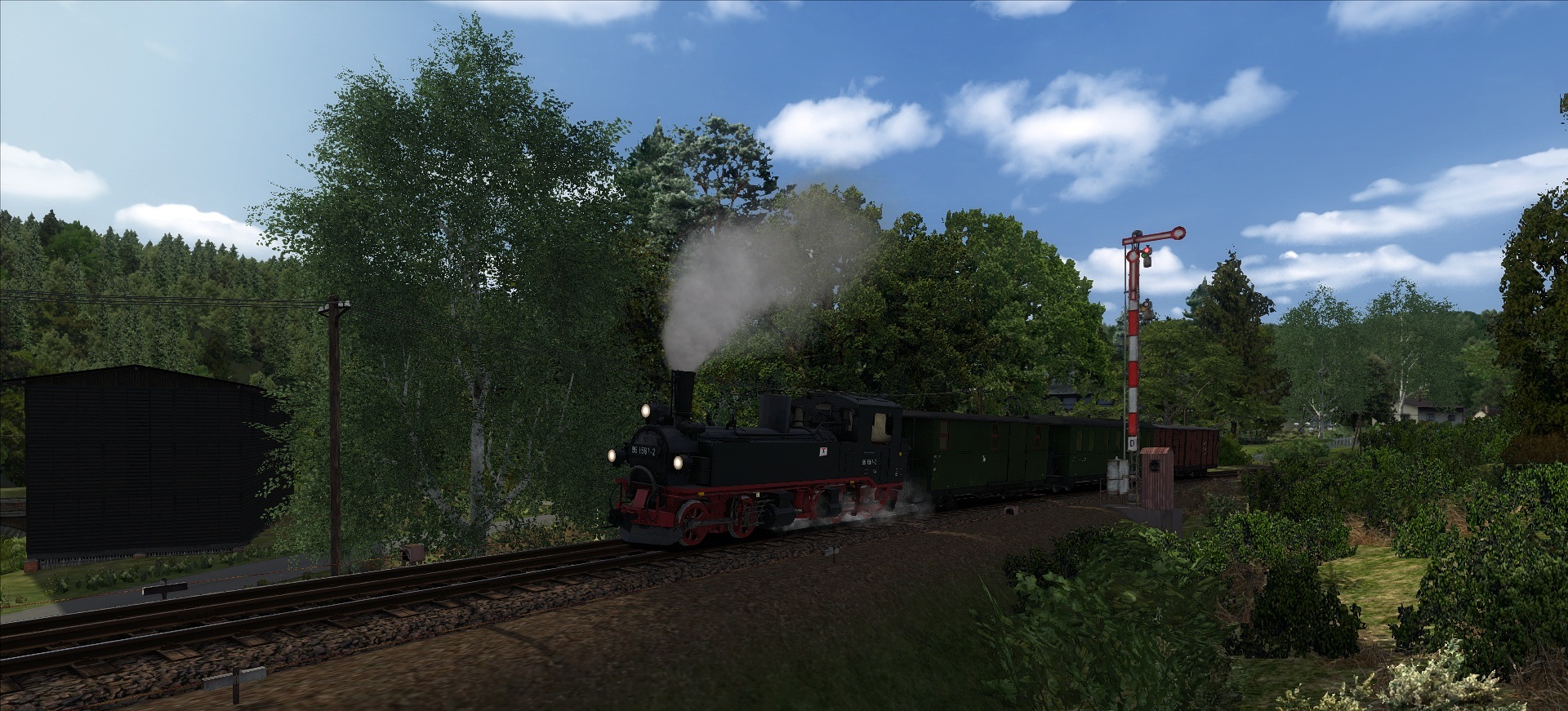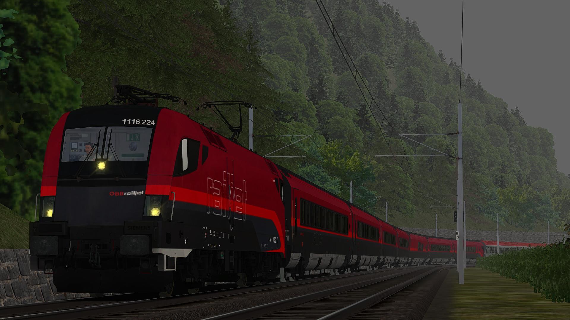 Der RW Enhancer wurde verwendet und zudem ein bisschen Rollmaterial getauscht und die Jahreszeit in den Sommer verlegt (ich stehe nicht so auf Fahrten, auf denen man nichts sieht