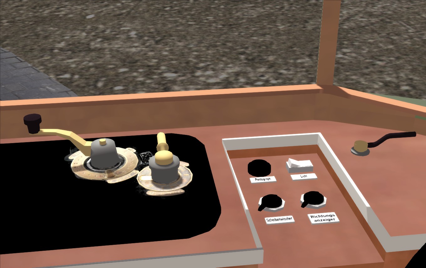 - ist fahrbar mit Funktionen für Pantograph, Türen (Beladen von Passagieren), Scheibenwischer