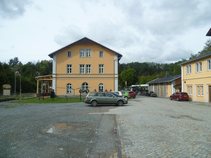 • Weiter gehts mit einem relativ kleinen Gebäude auf dem Bahnhofsareal - dem zusammen mit dem EG 1866 von der Chemnitz-Annaberger Staatseisenbahn im gleichen Stil errichtete Wirtschaftsgebäude, welches später noch um einen kleinen Hof mit Schuppen und Garagen erweitert wurde. Als Besonderheit ist an Stirnseite am Bahnhofsplatz ein öffentlich zugänglicher Wasserhahn eingefasst, welches heute noch mit einem Sachsenstolz Motiv verziert wird ^^