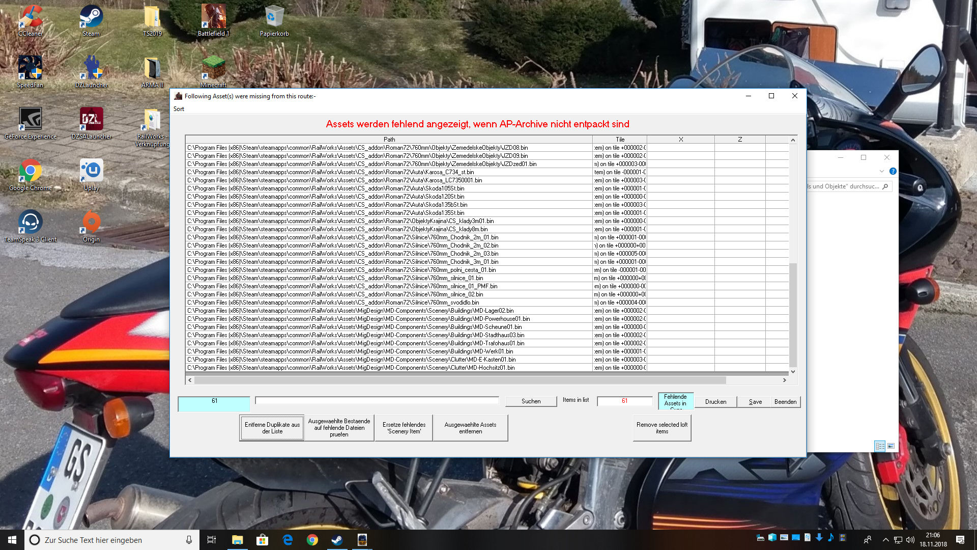 • Ja natürlich fehlen da die Bahndämme und die gehören wie das meiste aus deinen Listen zur tschechischen Uzkorozchodka Strecke, die muss dafür zwingend instaliert werden, so wie es auch in der Anleitung steht ;) Aber wie ich sehe, fehlt da noch einiges mehr...