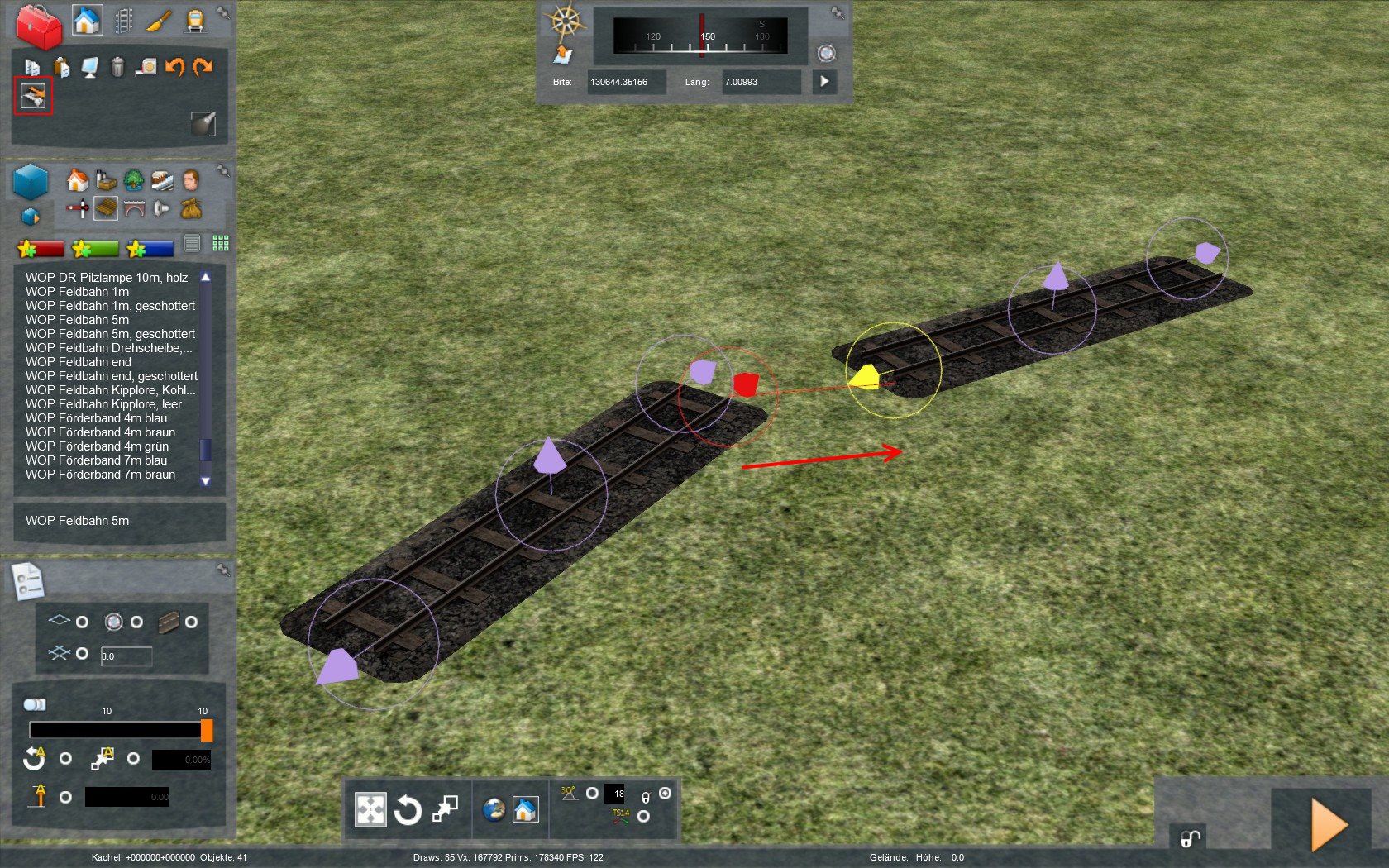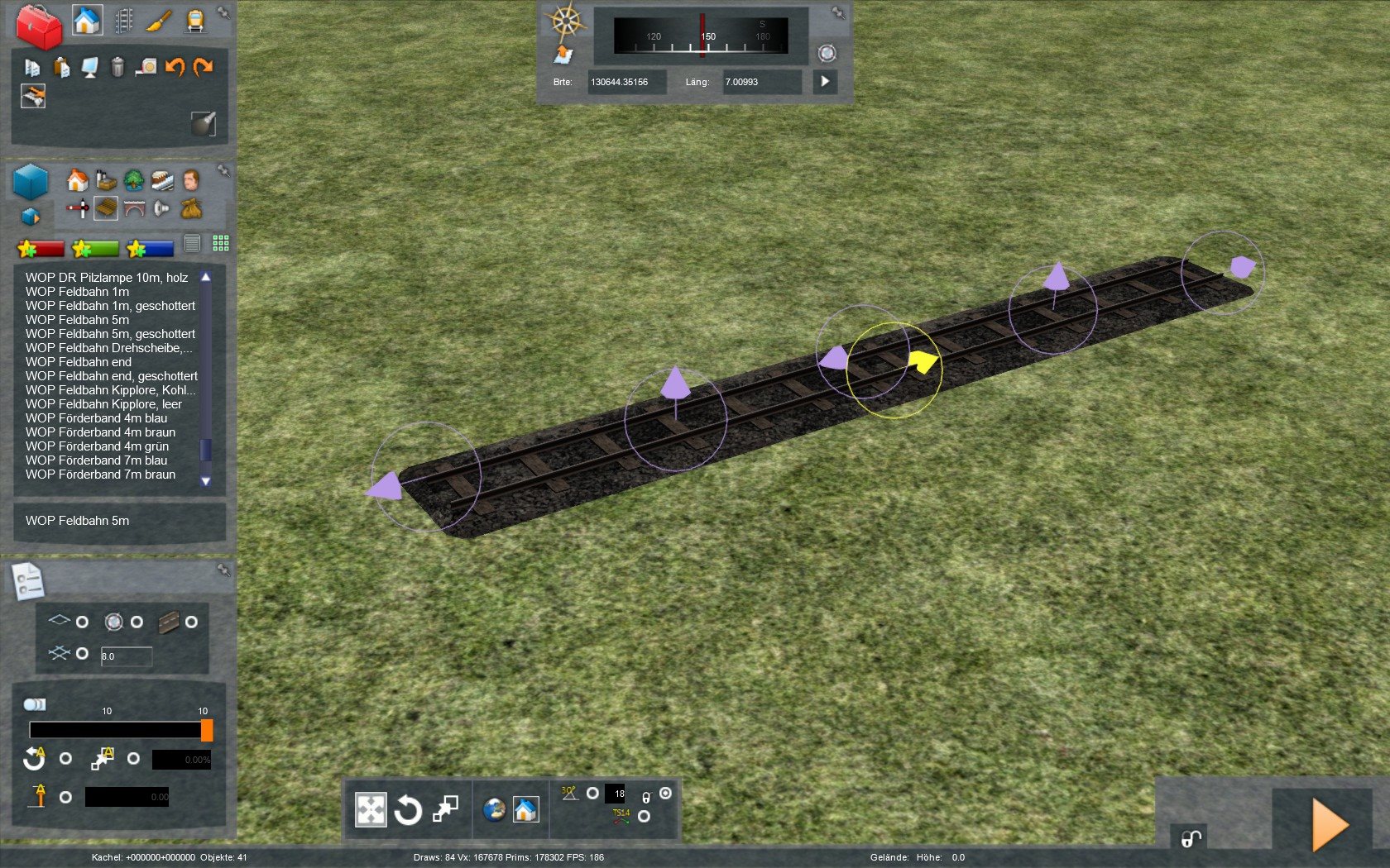 Damit lassen sich dann die wildesten Konstruktionen erzeugen und wenn man will, kann man die einzelnen Teile auch noch kippen, um Höhen zu überwinden. Nur Kurven hab ich dabei nicht eingeplant ;)
