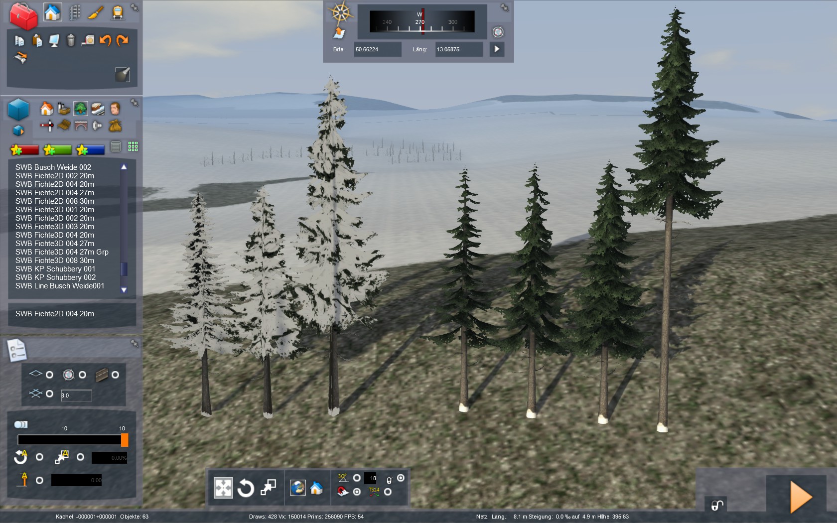 • Mir ist eben Screenshot Thread im Bild 2.968 / 61 aufgefallen das die 3d Tannen von Swb keine Schneetexturen haben. Das gleiche Problem habe ich auch auf meiner umgebauten Usedom Strecke, aber das seltsame daran ist, wenn ich die 3D Tanne im Schnellen Spiel im Winter ( Streckeneditor, Winter ) setze sind die Schneetexturen vorhanden.