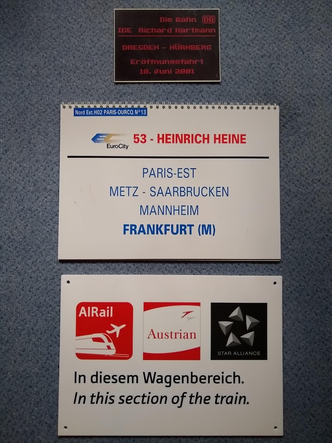 Bei dem kleinen Schild handelt es sich um ein eigens für die Eröffnungsfahrt des ICE T auf der Relation Dresden-Nürnberg angefertigtes Zuglaufschild im Stile einer digitalen Anzeige. Dieses Schild ist definitiv etwas für Sammler. Ob es ein Einzelstück ist, weiß ich nicht, glaube ich auch nicht, aber es gibt garantiert nur wenige.