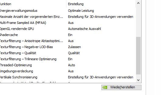Nur mit seinen beiden Bildern der Nvidia Systemsteuerung täuschst Du Dich etwas. Das eine zeigt die globalen Einstellungen bei ihm, und das andere eines einzelnen Spieles (vermutlich des TS).