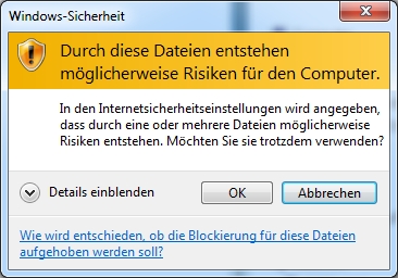 Sie besagt, dass durch die (strengen) Interneteinstellungen eine Warnung ausgelöst wird, wenn man Inhalte aus dem Internet herunterlädt und entpacken/installieren möchte.