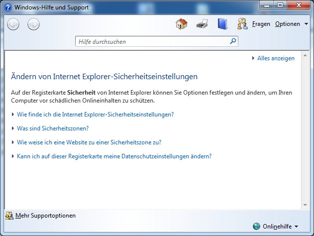 Ich habe im Internet Explorer nie irgendwelche Einstellungen vorgenommen!