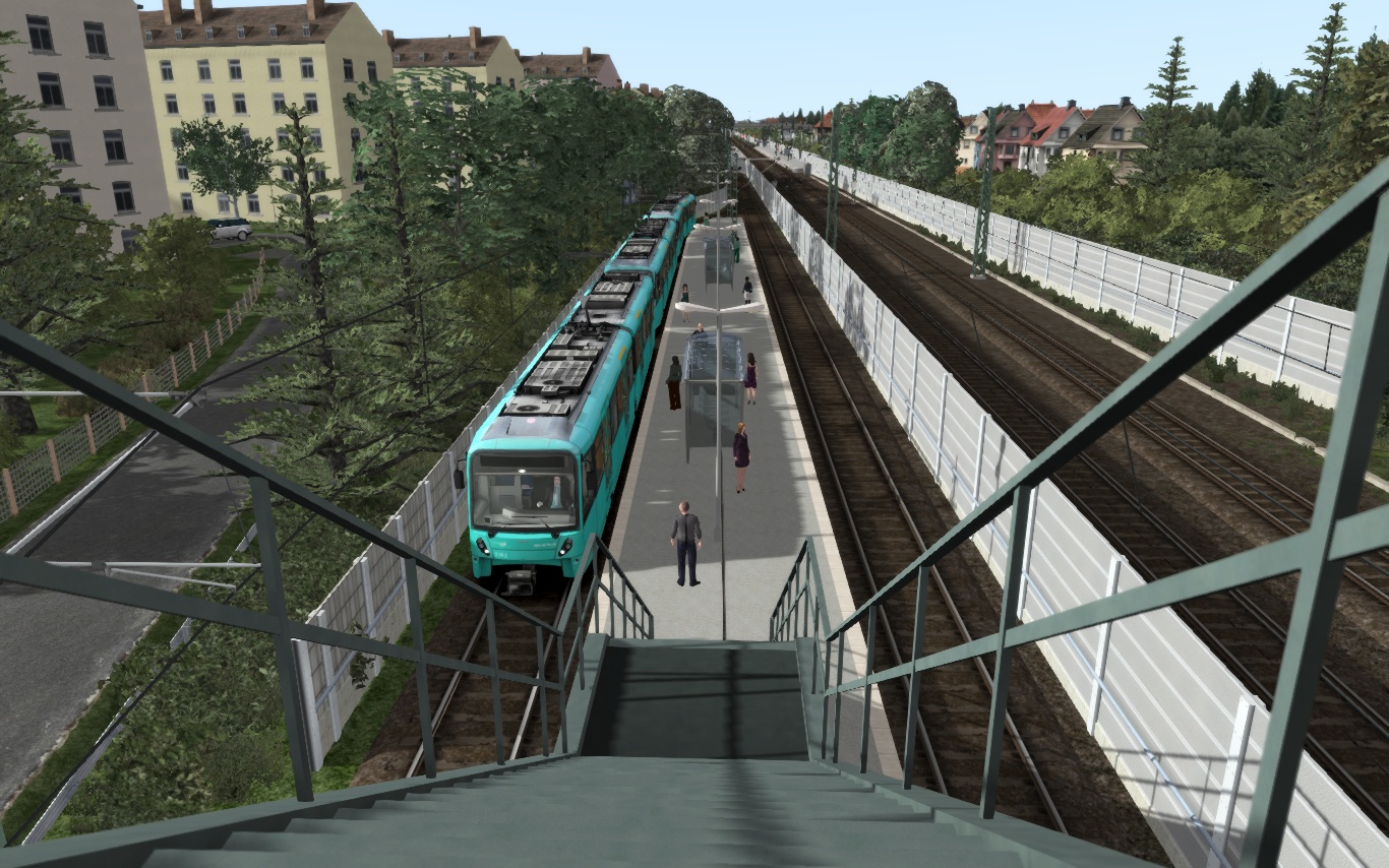 - Erhöhung der Bahnsteige. Ich finde sieht einfach etwas besser aus als die flachen Bahnsteigflundern und passt nun auch besser für die U5 aus dem Addon U-Bahn Frankfurt :). Außerdem fehlten an zwei eingleisigen Stationen auf einer Seite der Bahnsteig. Zumindest in der Realität wär dies schlecht, da die real auf der S2 eingesetzten Fahrzeuge nur den Ein-/Ausstieg auf einer Seite besitzen.