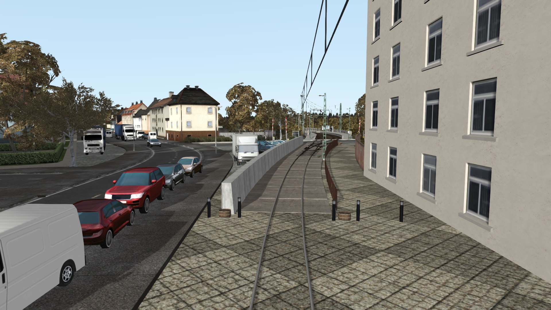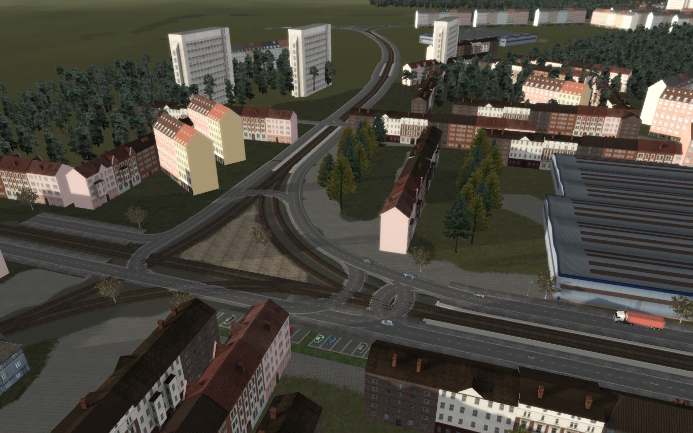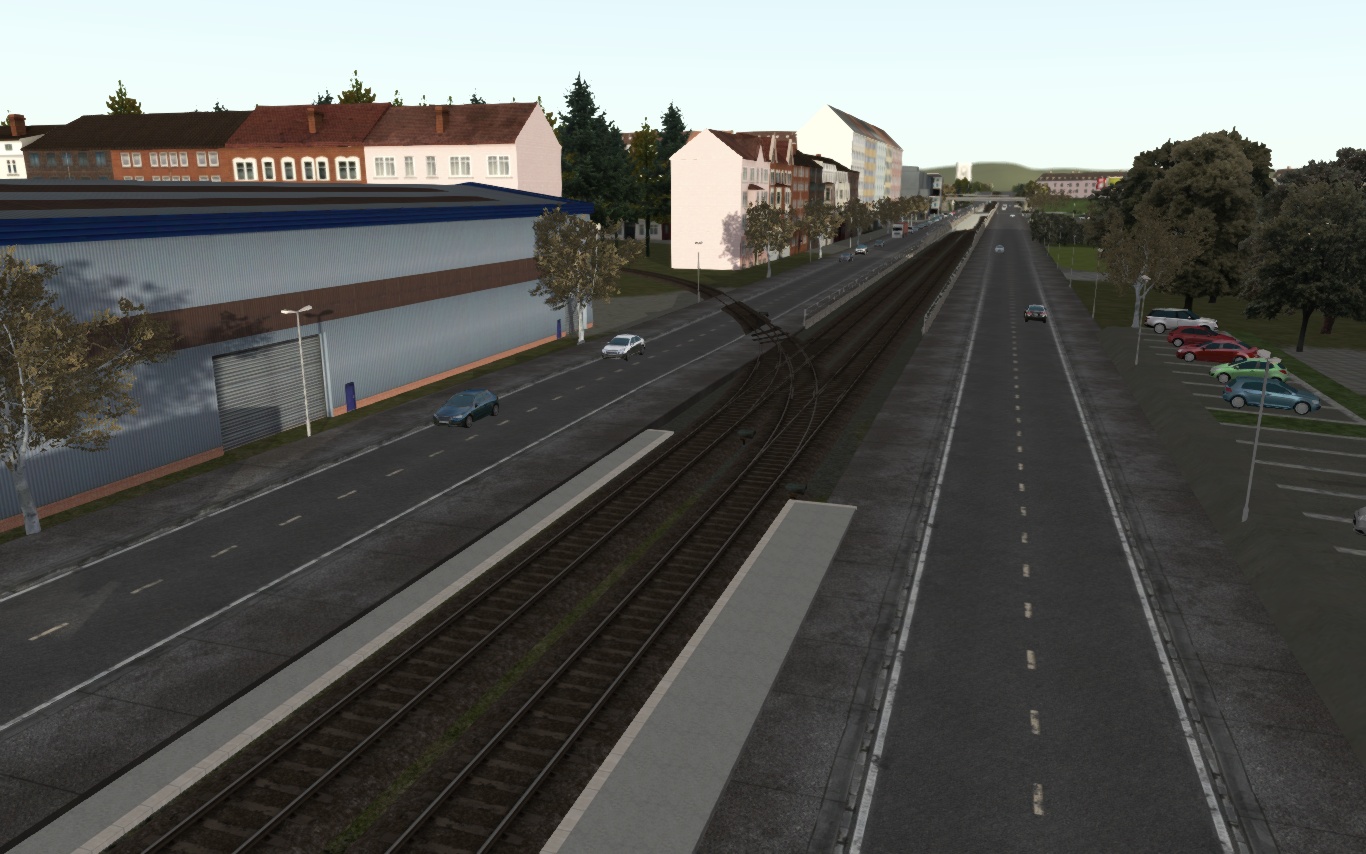 - neue Gleisverlegung zwischen den Stationen "Janear Str" und "Reitschulschlag" um eine Kurvenüberhöhung einzufügen, da in real hier eine vorhanden ist. Dabei habe ich auch die Steigung nordwärts etwas entschärft. Gleise liegen, Kurvenüberhöhung fällt aber vorerst aus. Grund: der Übergang ist zu kurz, man fällt quasi in die Kurve. Fühlt sich nicht schön an. Die Verwendung anderer Gleise/Trackrules gab auch kein gescheites Ergebniss, da für meinen Geschmack der Kurvenübergang zu weitläufig ist. Vielleicht finde ich irgendwann eine Lösung.