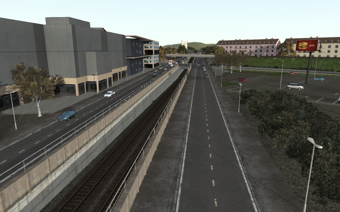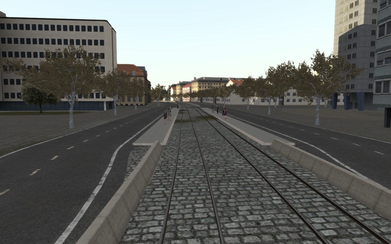 - Höhenprofil Bereich Ostmarkstr.: ein vorhandener "Hubel" wurde TS-bedingt nicht umgesetzt um stattdessen das "Rasengleis" darzustellen.