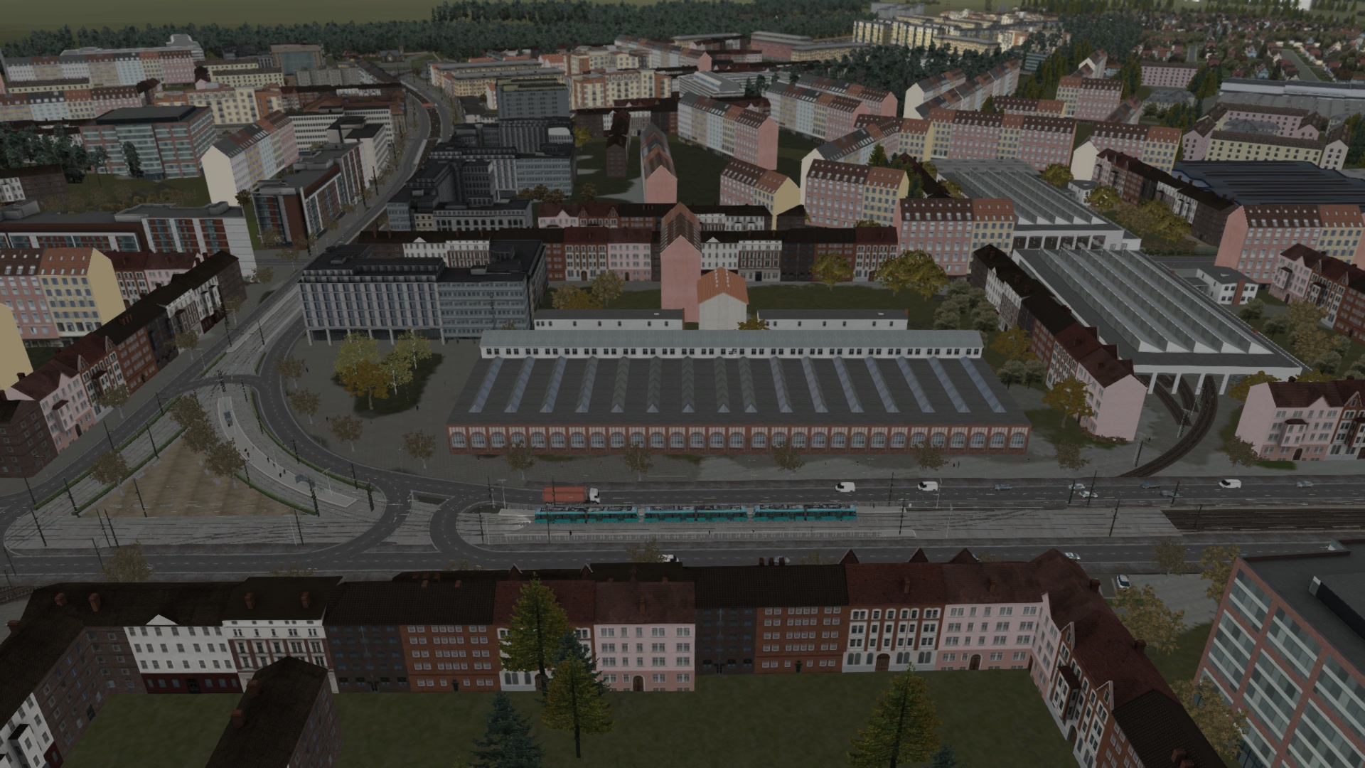 - fiktiv sind die Kurvenradien in den Kreuzungsbereichen: Hauptfriedhof, Tullastr., Auer Str., sowie die Wendeschleife Durlach Turmberg. Wegen Einschränkungen sind keine engeren Kurvenradien möglich gewesen, daher musste ich die Bebauung anpassen. An der Tullastr. fehlt zudem die Gleisverbindung vom Hauptfriedhof Ri. Innenstadt (die gscheite Darstellung der Weichen war nicht möglich), an der Auer Str. fehlt die Verbindung von Durlach nach Wolfartsweier, bzw von Durlach in das nördliche Stumpfgleis.
