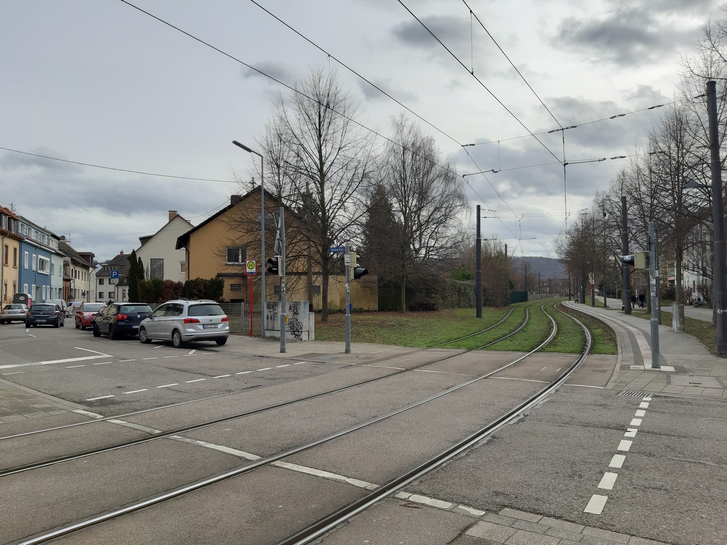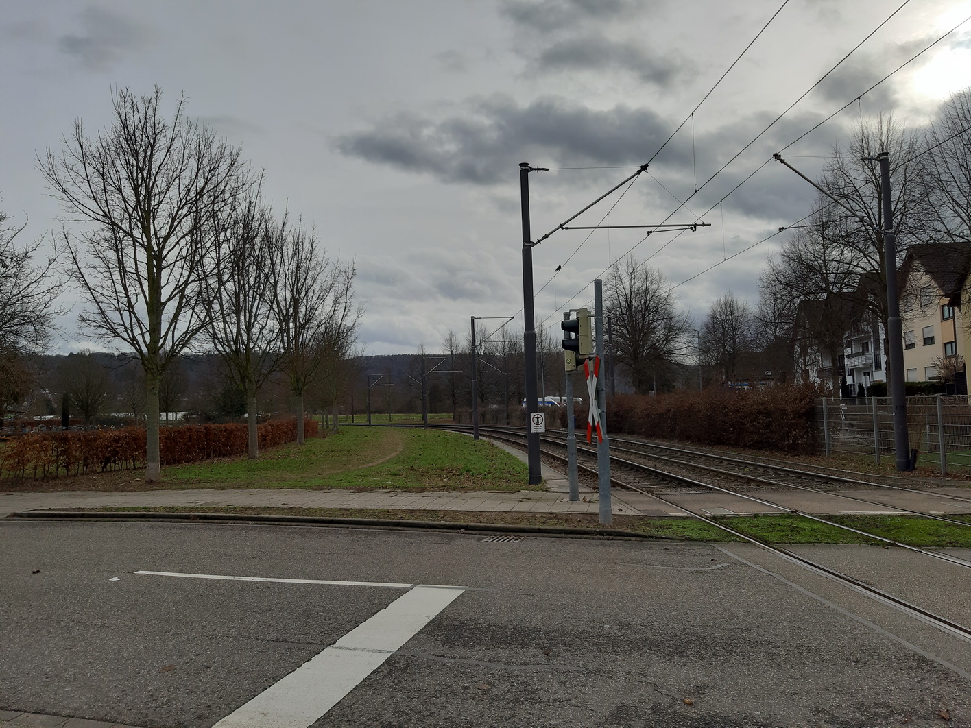 - Oberleitung komplett zwischen Hagsfeld-Süd und Durlach (außer Abzw. zum Bahnhof Durlach, Abstellgleis Durlach, Abstellanlage Tullastr.)