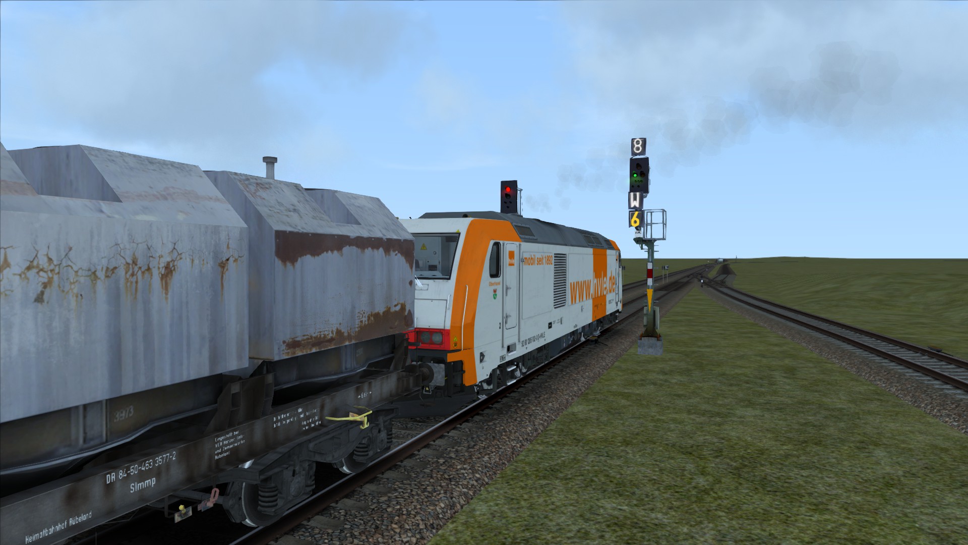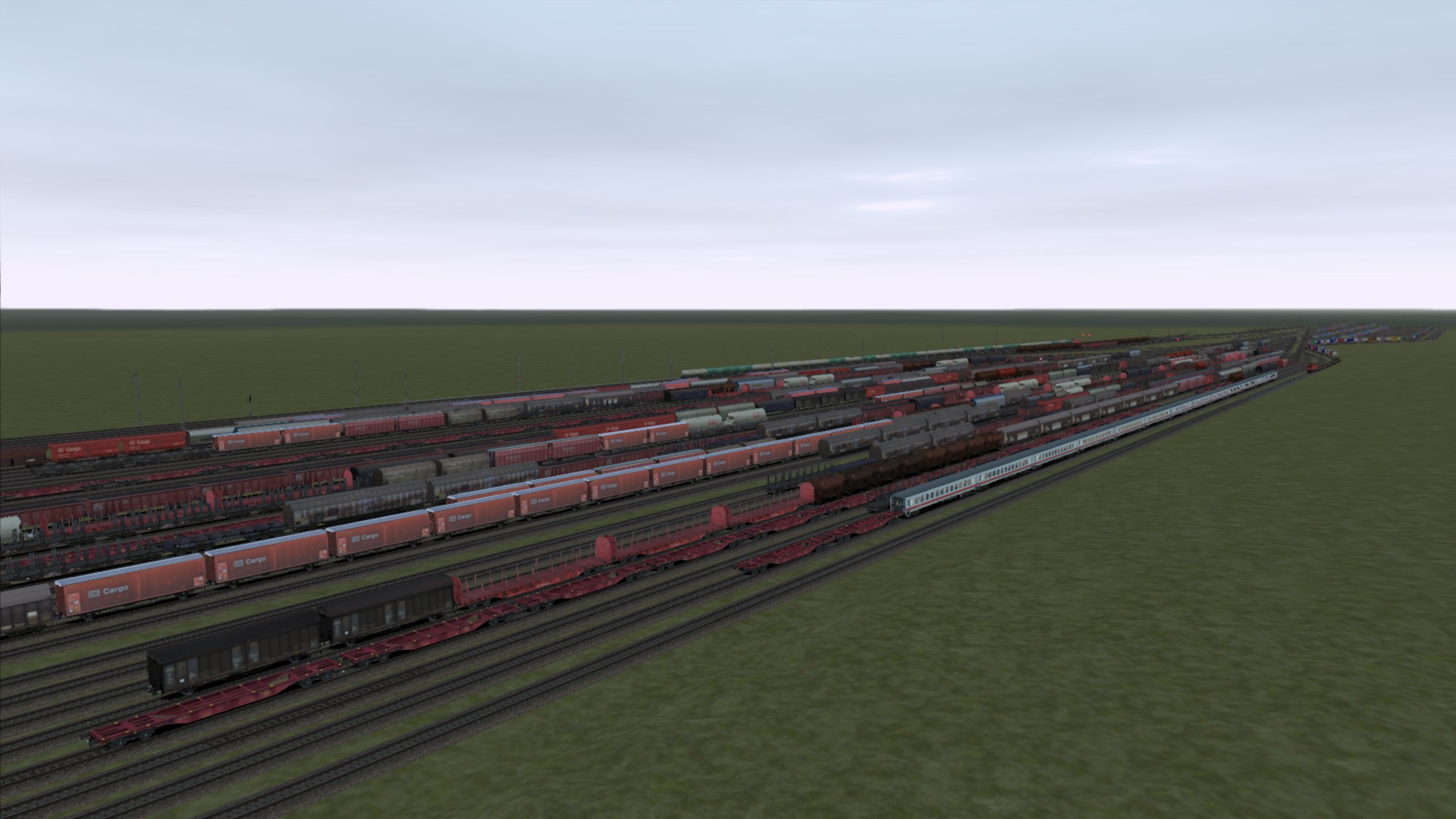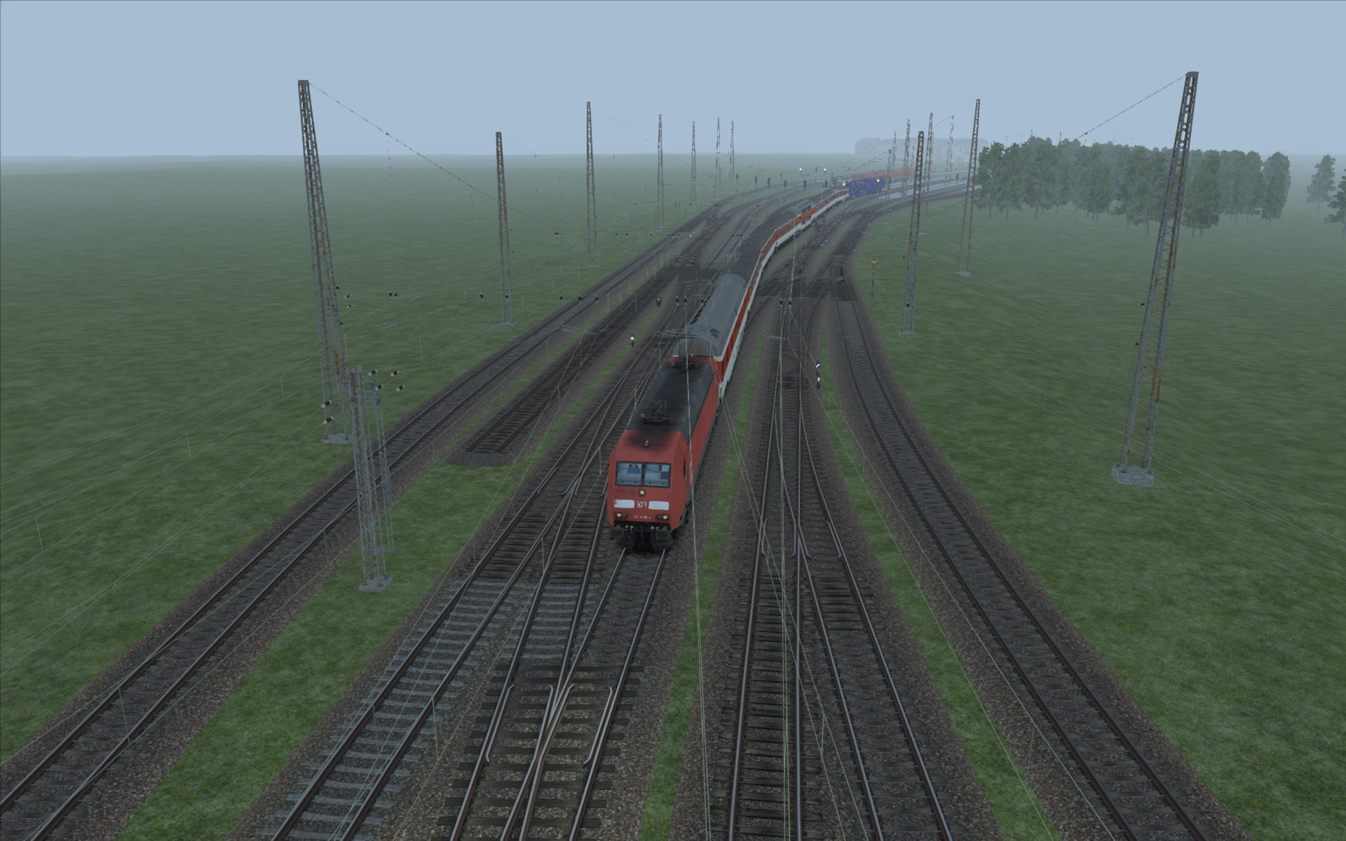 Zwischendurch habe ich auch immer mal wieder Bilder im allgemeinen Screenshot Thread gestreut... Ein paar haben es vielleicht erkannt, aber viel mehr als leere Landschaft mit ein paar Gleisen drauf und Signalen war da lange Zeit auch nicht. Vor ein paar Wochen habe ich dann aber zumindest mit der TSC Oberleitung weiter gearbeitet und mittlerweile kann man zumindest sagen ist die Eisenbahninfrastruktur in Teilen schon sehr voran gekommen. Warum aber nur in Teilen? Schauen wir uns mal dieses schicke Bild an: