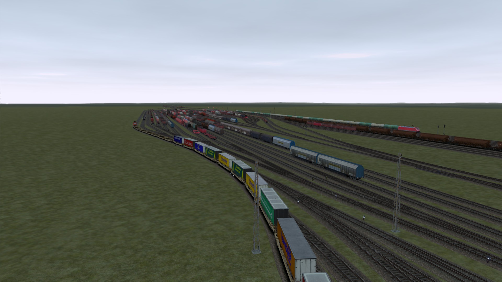 Zwischendurch habe ich auch immer mal wieder Bilder im allgemeinen Screenshot Thread gestreut... Ein paar haben es vielleicht erkannt, aber viel mehr als leere Landschaft mit ein paar Gleisen drauf und Signalen war da lange Zeit auch nicht. Vor ein paar Wochen habe ich dann aber zumindest mit der TSC Oberleitung weiter gearbeitet und mittlerweile kann man zumindest sagen ist die Eisenbahninfrastruktur in Teilen schon sehr voran gekommen. Warum aber nur in Teilen? Schauen wir uns mal dieses schicke Bild an: